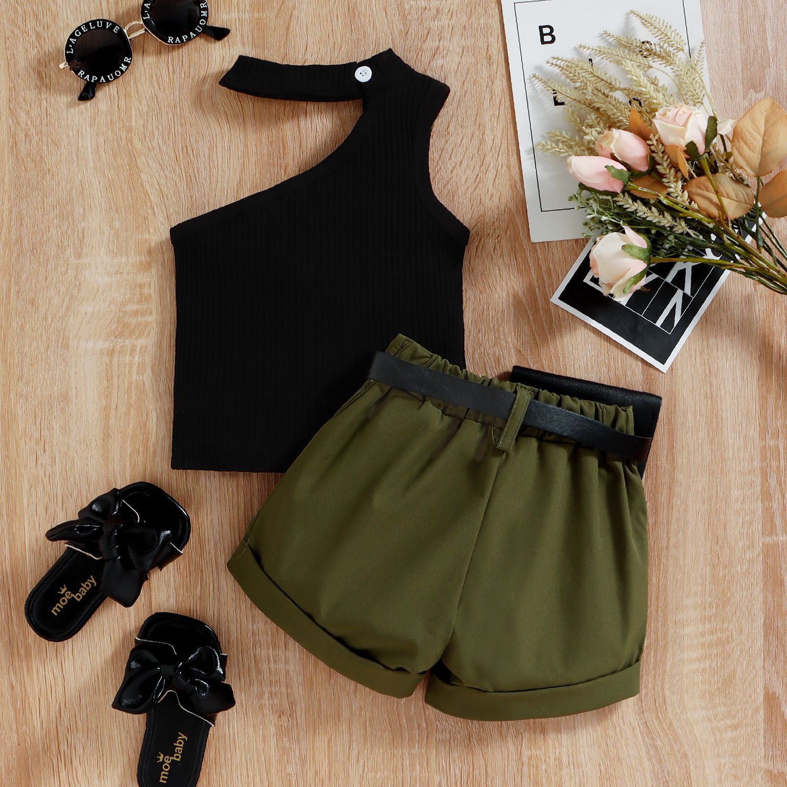 | nameOriginal | TX Children's Clothing Amazon Cross-border Children's Summer Sleeveless Shoulder Pit Top Curl Shorts Trendy Girls' Suit |