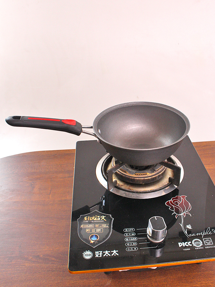 | nameOriginal | TXHR iron wok frying pan flat bottom long handle thickened uncoated cast iron pot induction cooker gas stove universal small noodles |