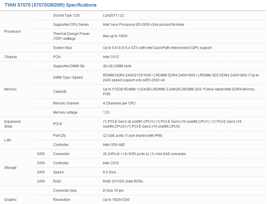 | nameOriginal | TYAN/Taian S7070 workstation dual-channel motherboard C612 chip supports E5-2600 V3/V4 |