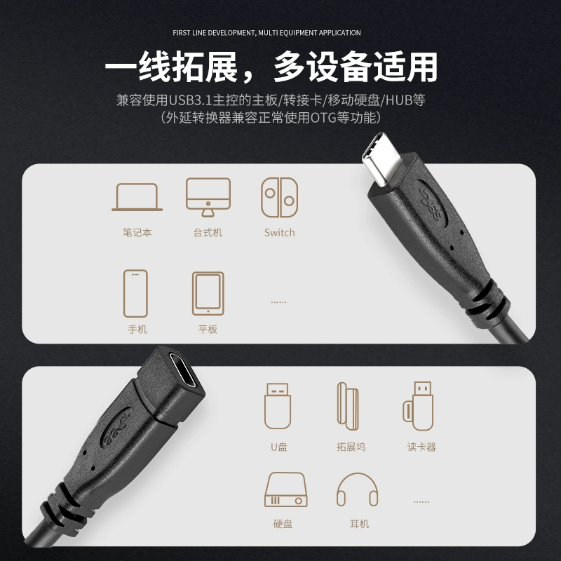 type-c extension cable male to female 10G transmission usb3.1 data cable extension cable macbookpro suitable for Nintendo switch mobile phone PD charging ns video dock base