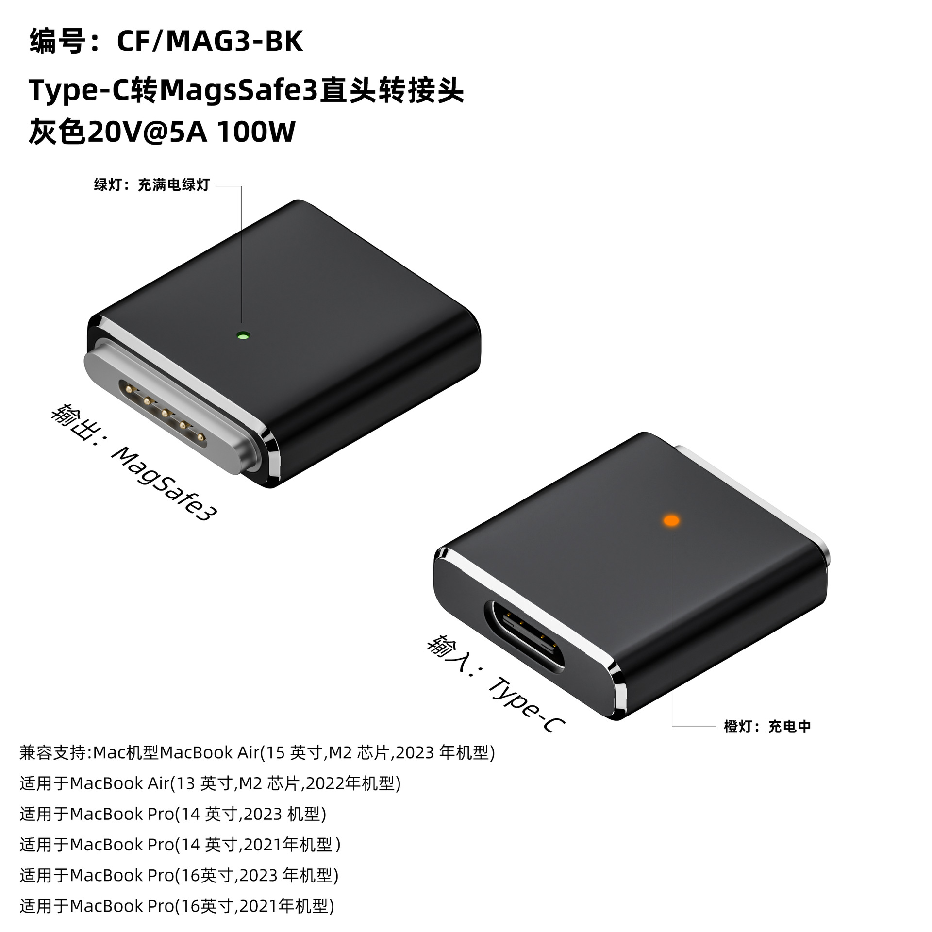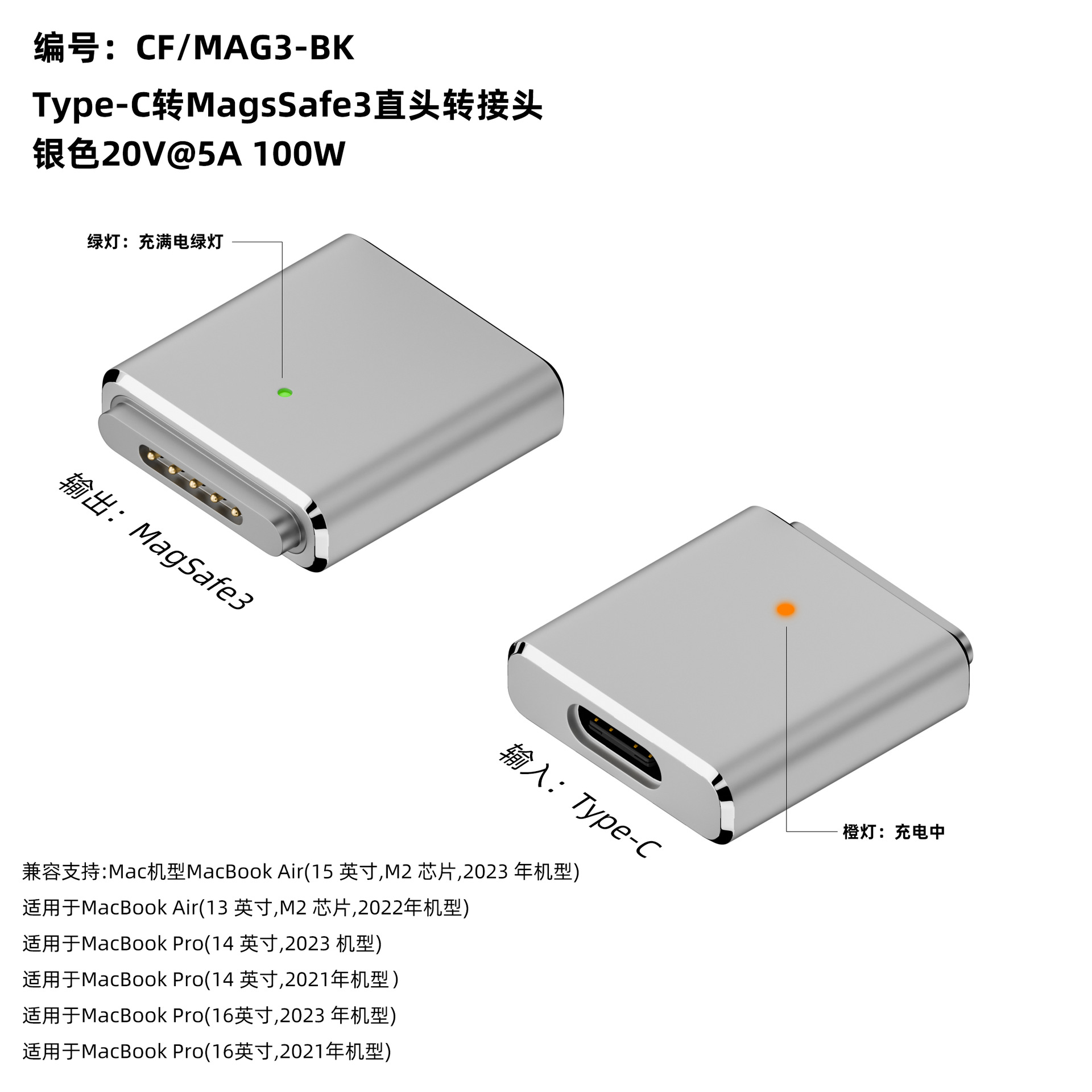 | nameOriginal | Type-C female to magsafe3 adapter 100W suitable for 2023MacBook/Pro/Air |