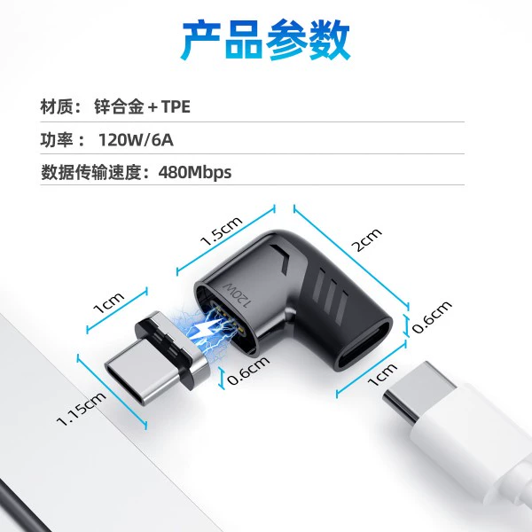 | nameOriginal | typec magnetic adapter PD120W converter head 6A super fast charging MacBook notebook mobile phone charging |