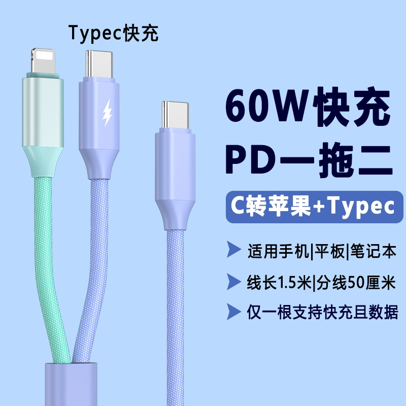| nameOriginal | Typec to double-ended Typec one-to-two data cable two-in-one PD60w fast charge suitable for 2 Apple Huawei mobile phone charger cable one-to-two extended car dual-use multi-function charger |