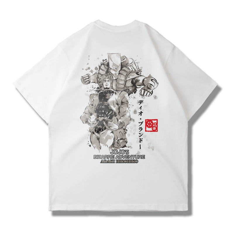 | nameOriginal | Tyrannosaurus Studio Japanese anime Jojo's Bizarre Adventure Jotaro Kujo short-sleeved T-shirt summer loose ins |