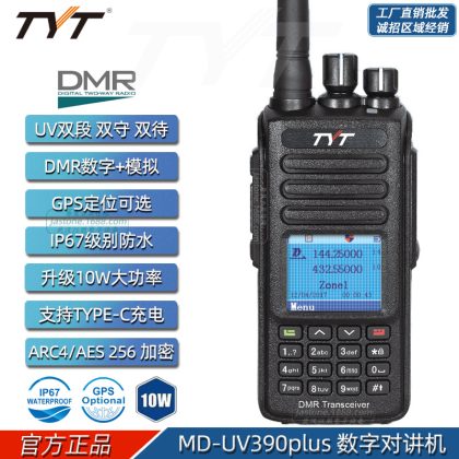 TYT MD-UV390PLUS DMR Digital Intercom AES256 IP67 Waterproof GPS 10W