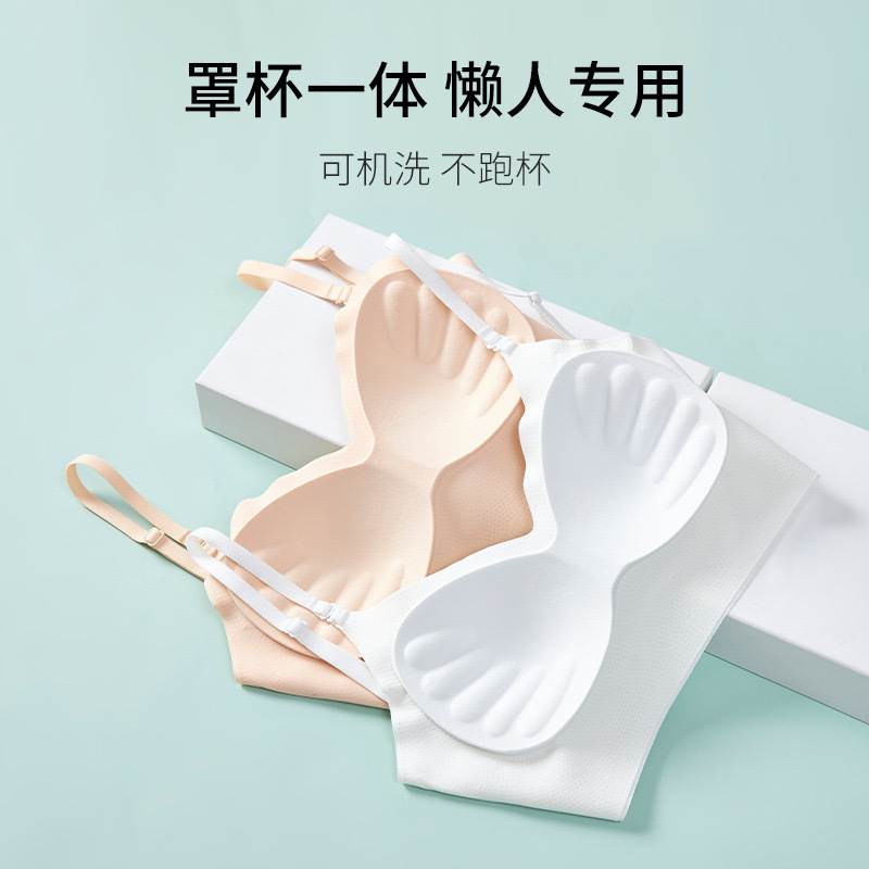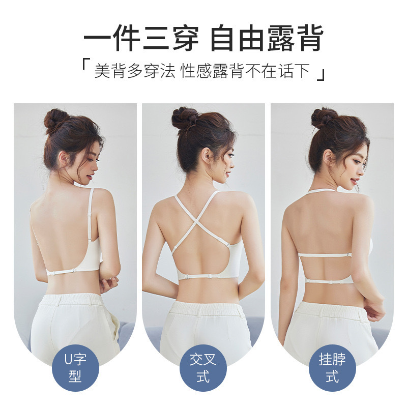 U-Back Underwear Women’s Large Backless Bra Camisole Vest Integrated Invisible Small Chest Gathering Traceless Outer Wear Tube Top