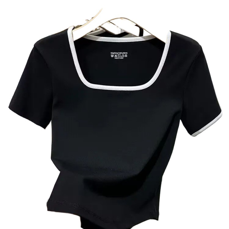| nameOriginal | U-collar T-shirt Women's Korean-style U-collar Shoulder Stripe Short-sleeved T-shirt Women's Summer All-match Belly-covering Short Top |