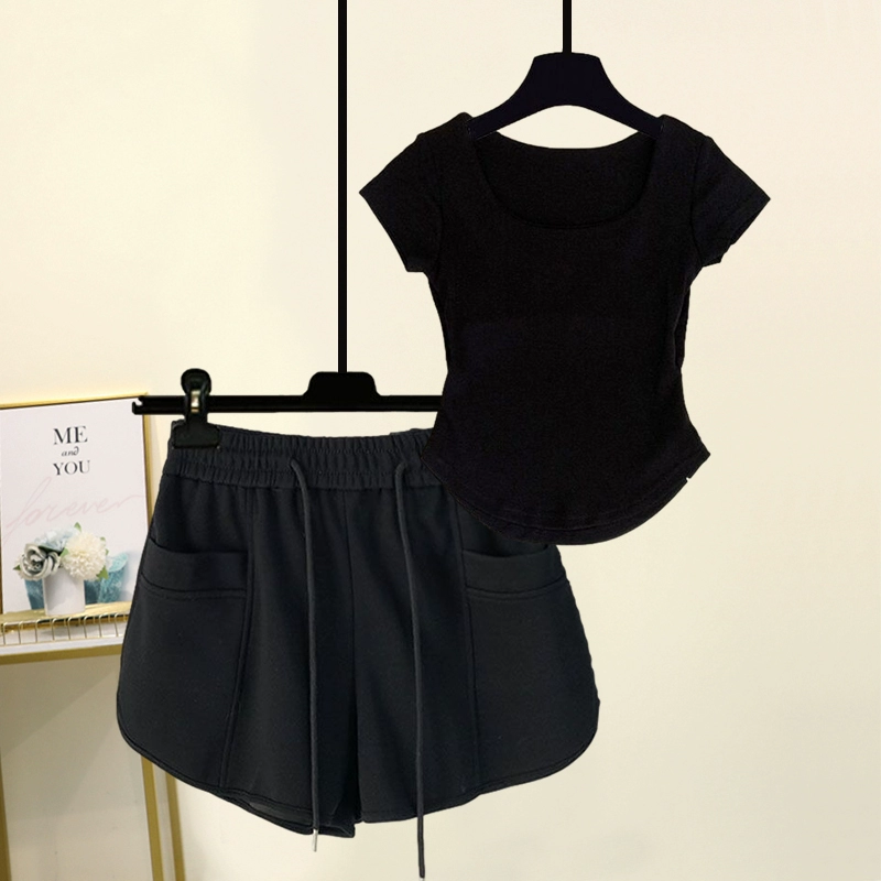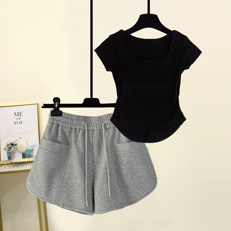 U-neck pure desire T-shirt casual drawstring niche sports suit