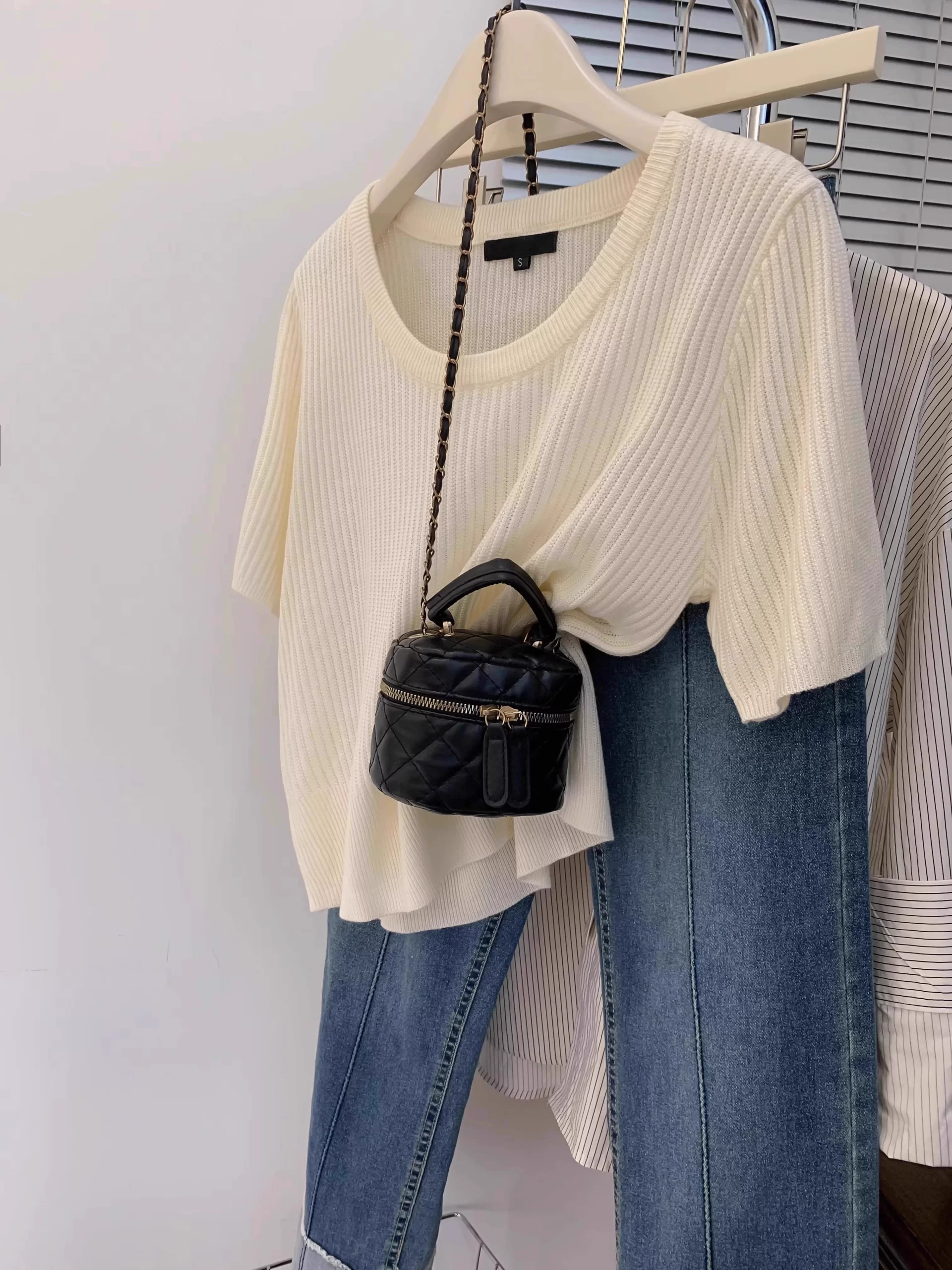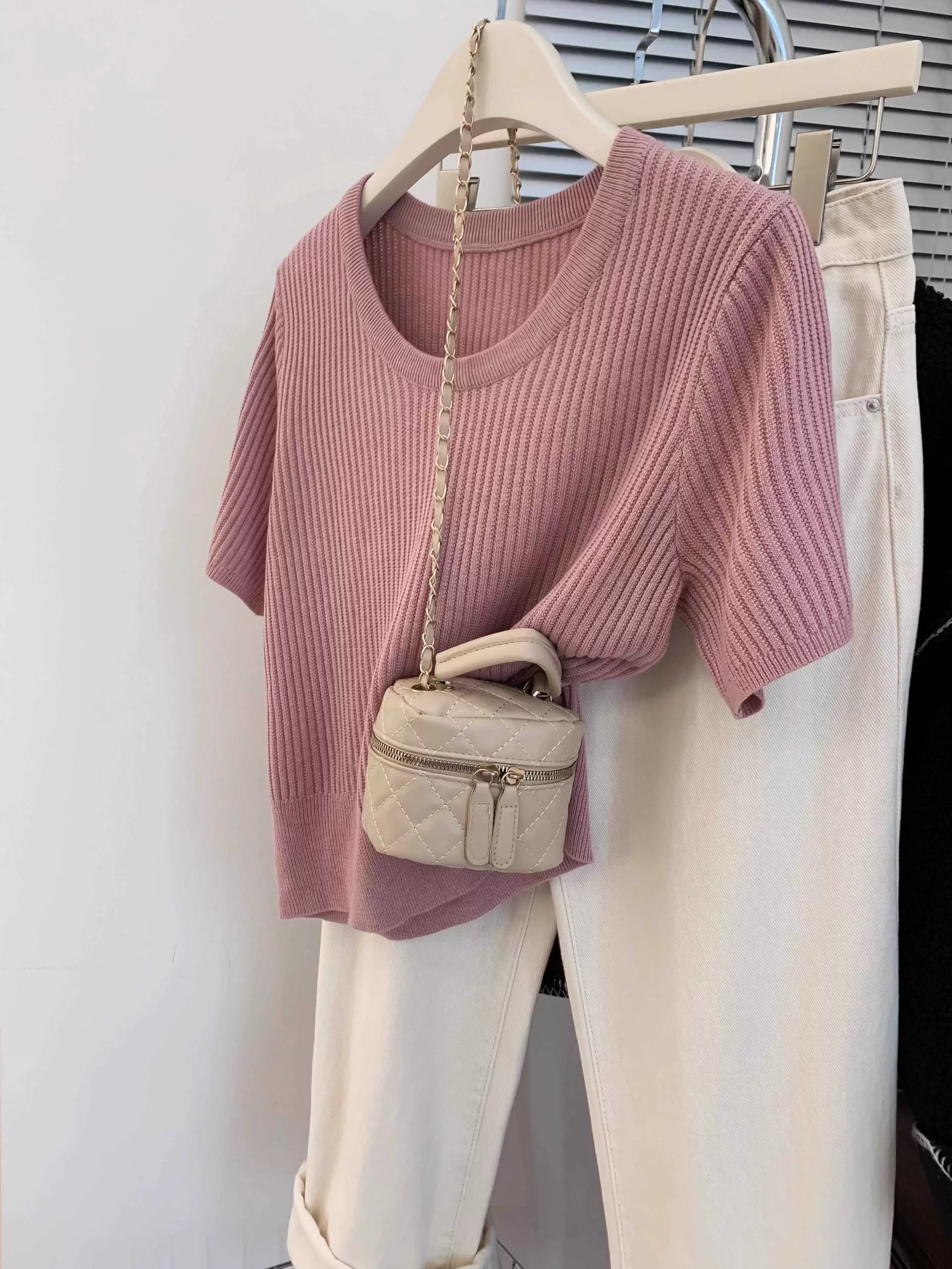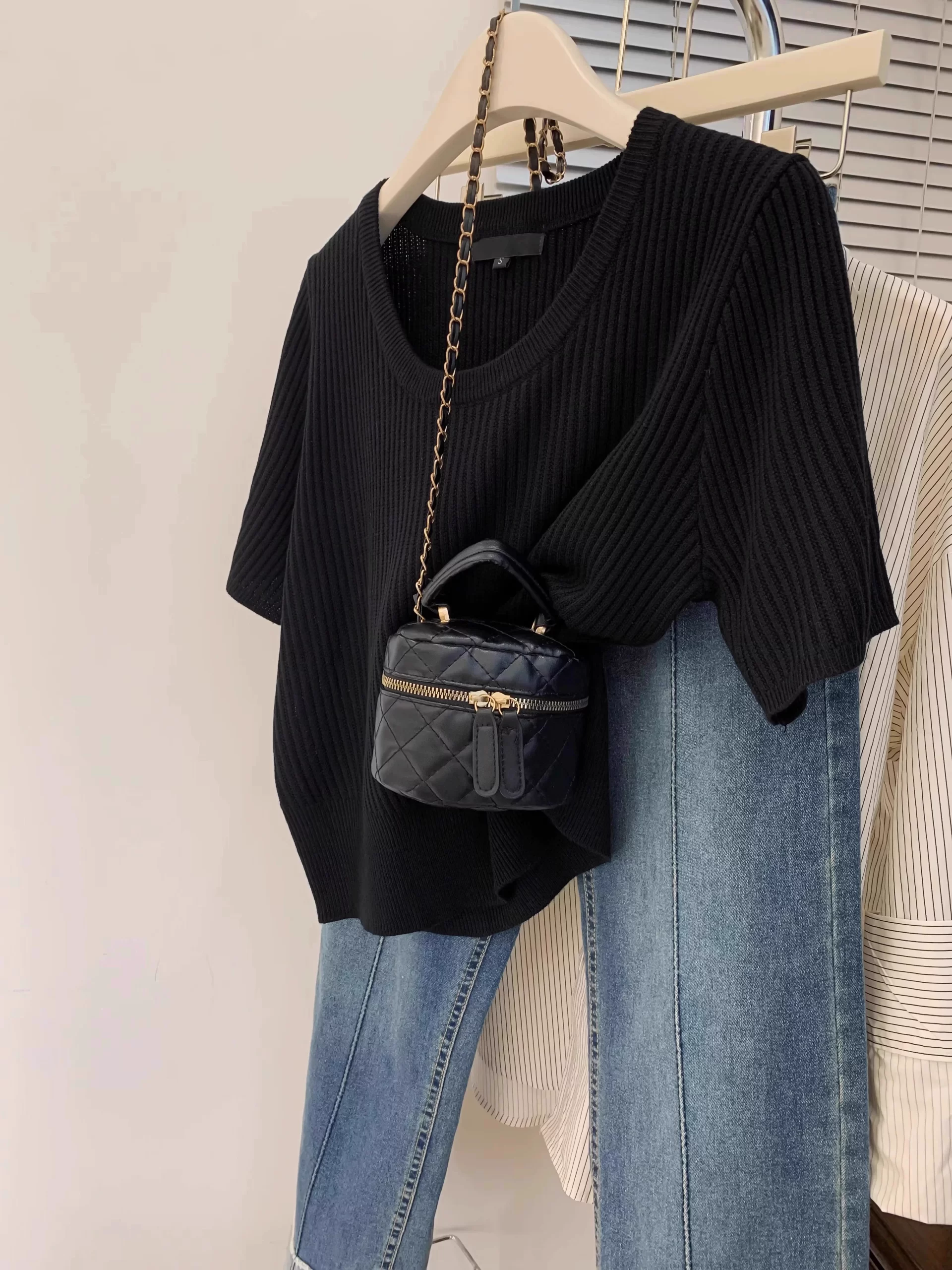 | nameOriginal | U-neck, right-shoulder design, popular style knitted short-sleeves |