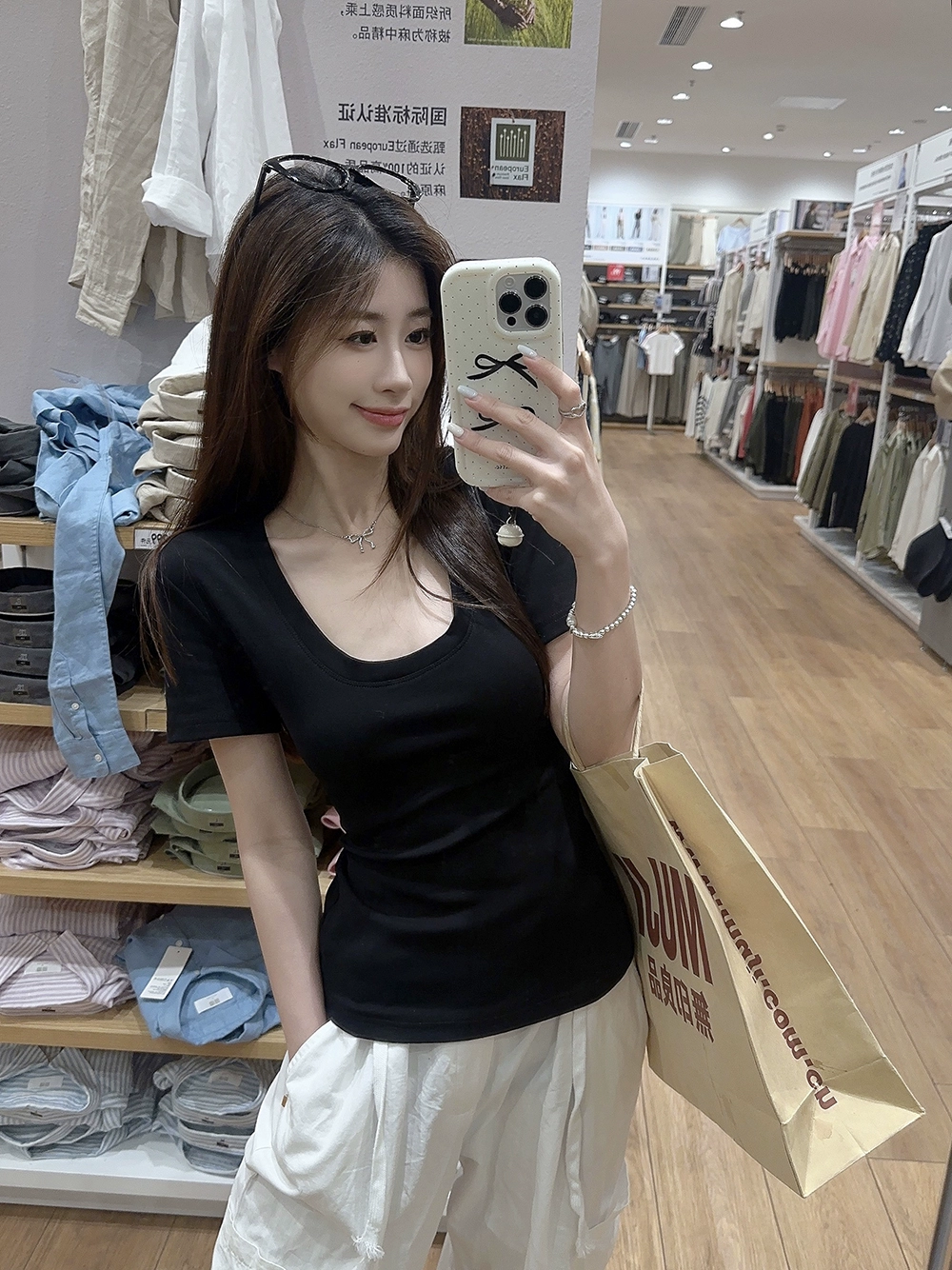 | nameOriginal | U-neck short-sleeved summer 2024 new slim straight shoulder T-shirt |