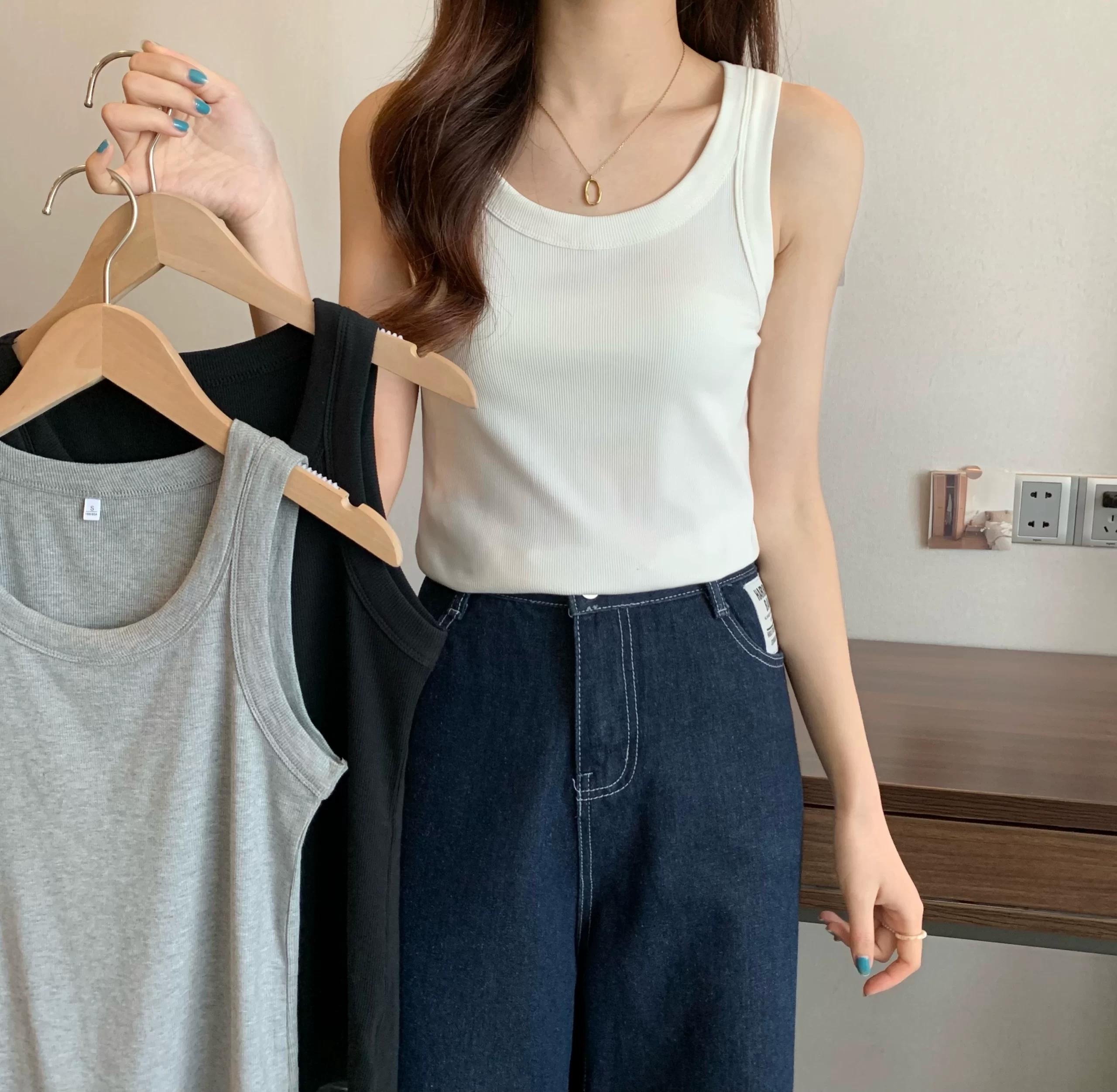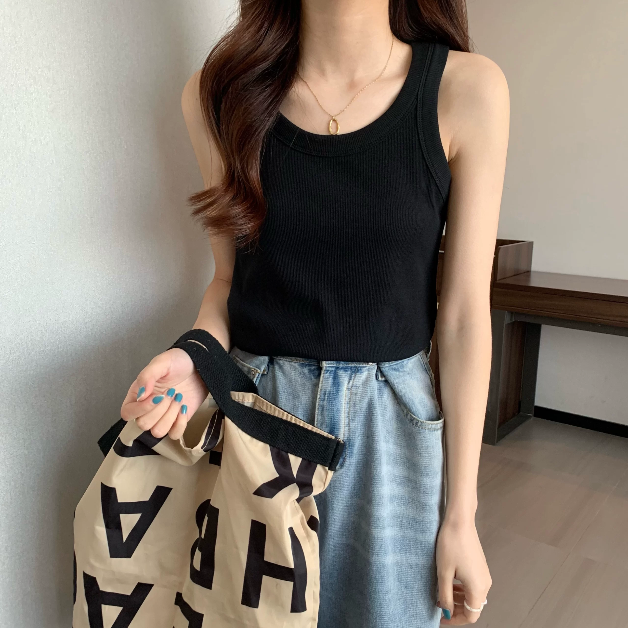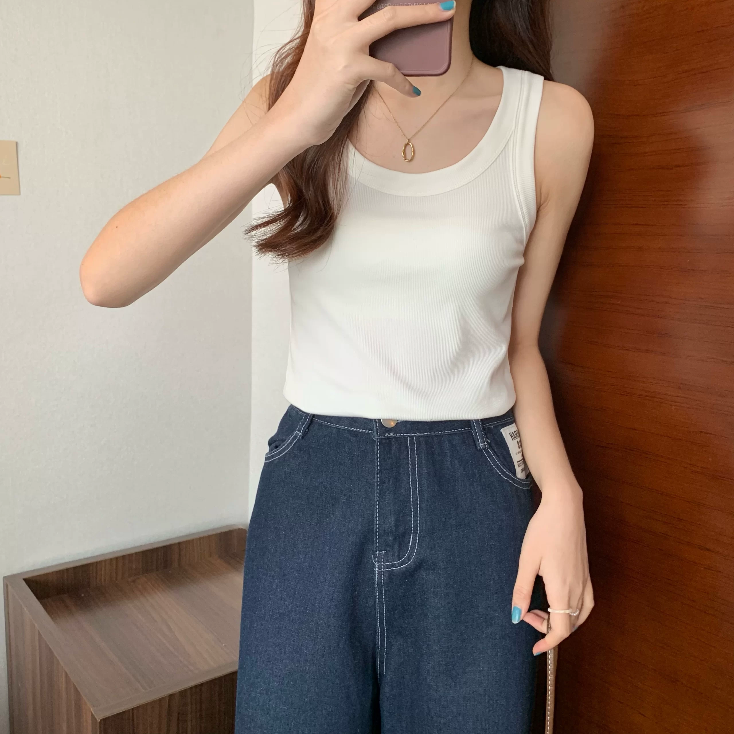 U-neck threaded slim fit T-shirt camisole