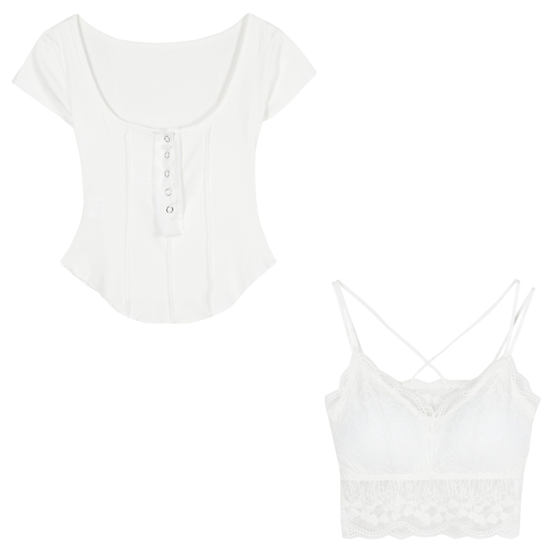 | nameOriginal | U-neck white top summer slim button T-shirt short sleeves |