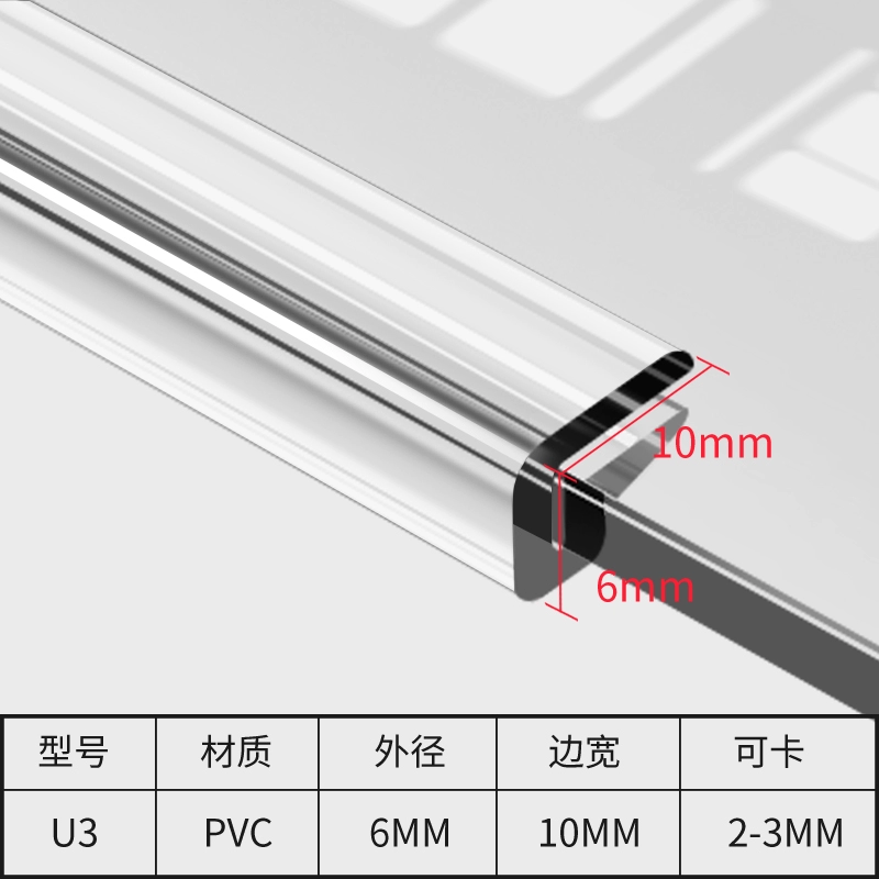 | nameOriginal | U-shaped anti-collision strip, table edge rubber strip, edge-wrapped transparent corner, anti-collision protection strip, glass edge strip, environmentally friendly corner safety |