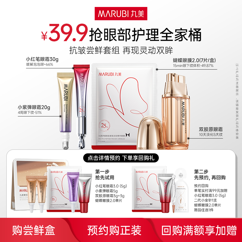 [U Xian Exclusive T] Marumi Little Red Pen 5g + Little Purple Elastic 5g + Double Collagen Eye Cream (3g + 3g) + Butterfly Eye Mask