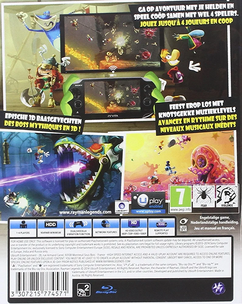 Experience an epic adventure with Rayman Legends on PlayStation 4, designed for Region 2. Join Globox, Rayman, and the Teensies as they explore a mysterious tent filled with beautiful paintings that transport them to mythical worlds. With an exciting storyline, you’ll jump, run, and fight your way through each world to save the day.