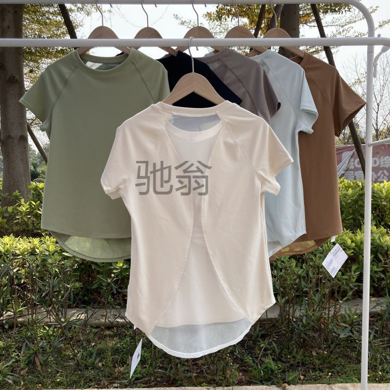 | nameOriginal | ueg2023 new cream color yoga sports short sleeve back perspective mesh women's T-shirt foreign trade temperament moisture absorption row |