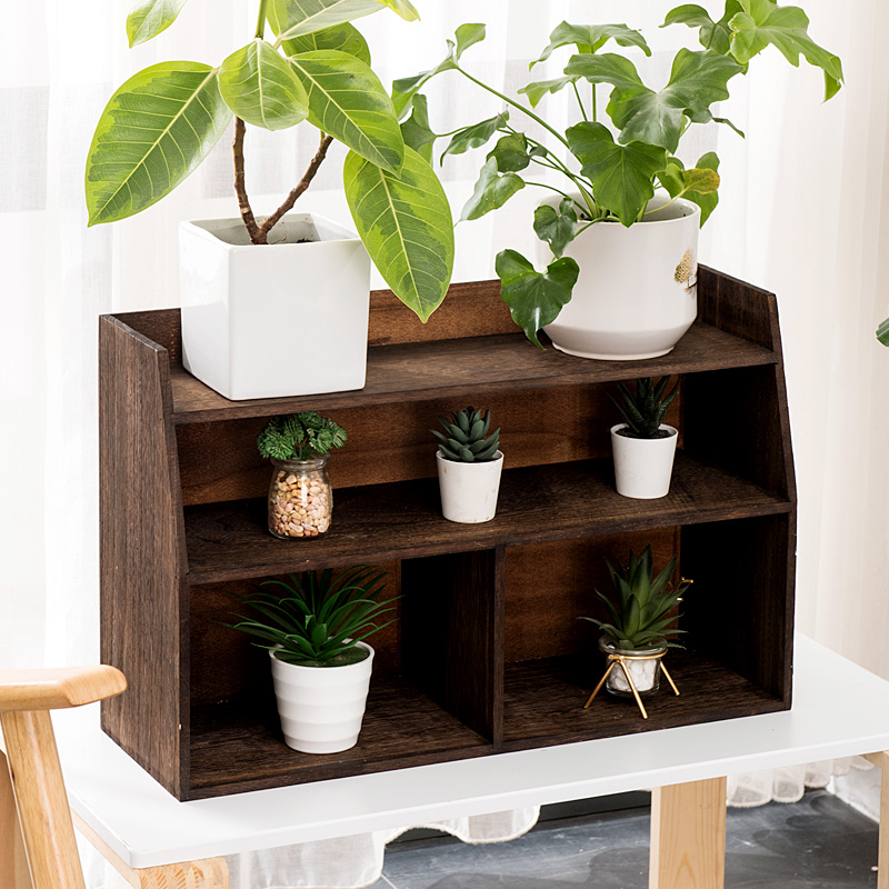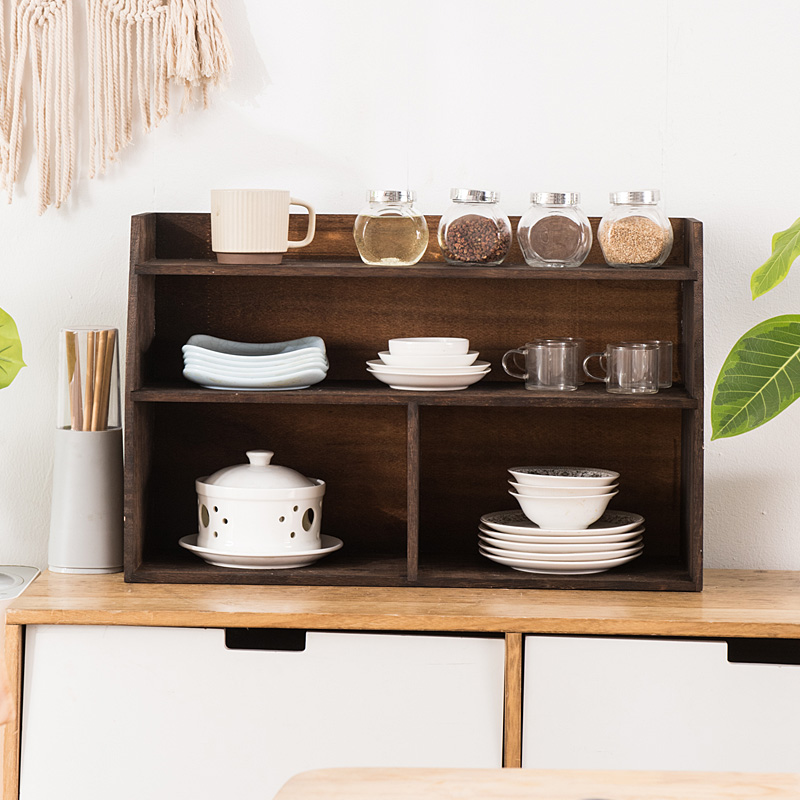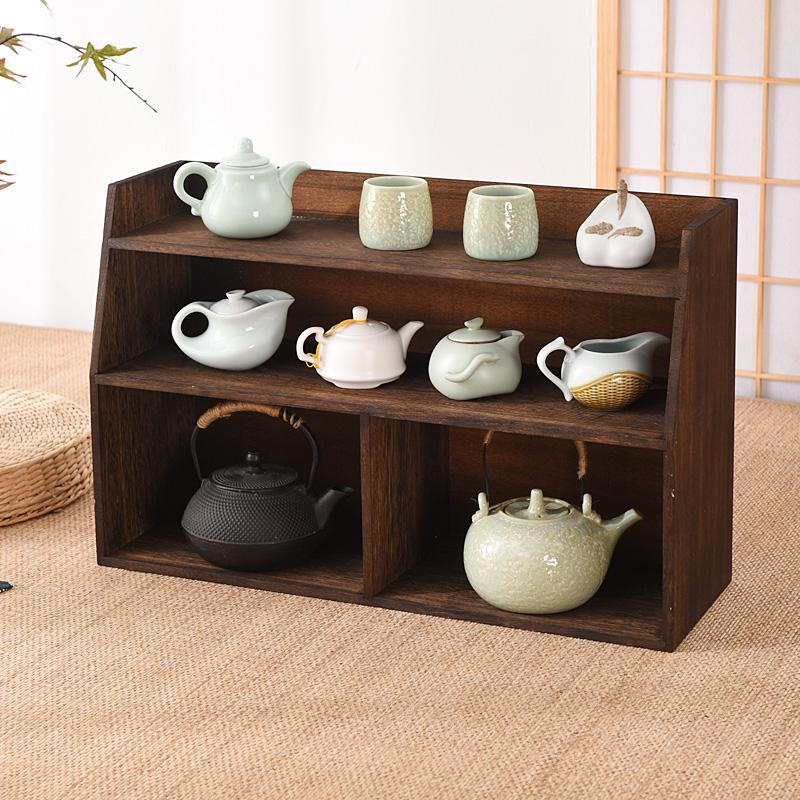 UG73 Solid Wood Tea Set Storage Rack Tea Cup Rack Antique Rack Desktop Double-Layer Teapot Rack Storage Rack Wall Hanging Bookshelf Flower
