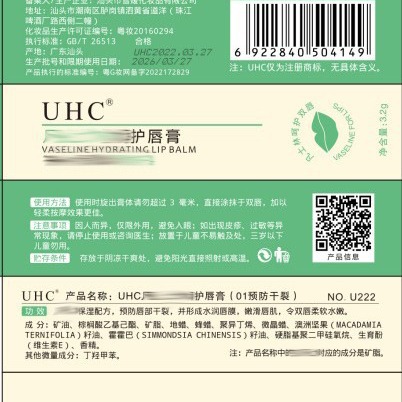 UHC Vaseline moisturizing lip balm Moisturizing Care natural autumn and winter lip care male and female manufacturers batch delivery