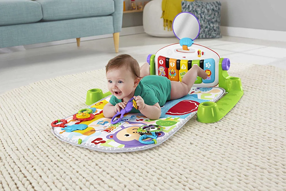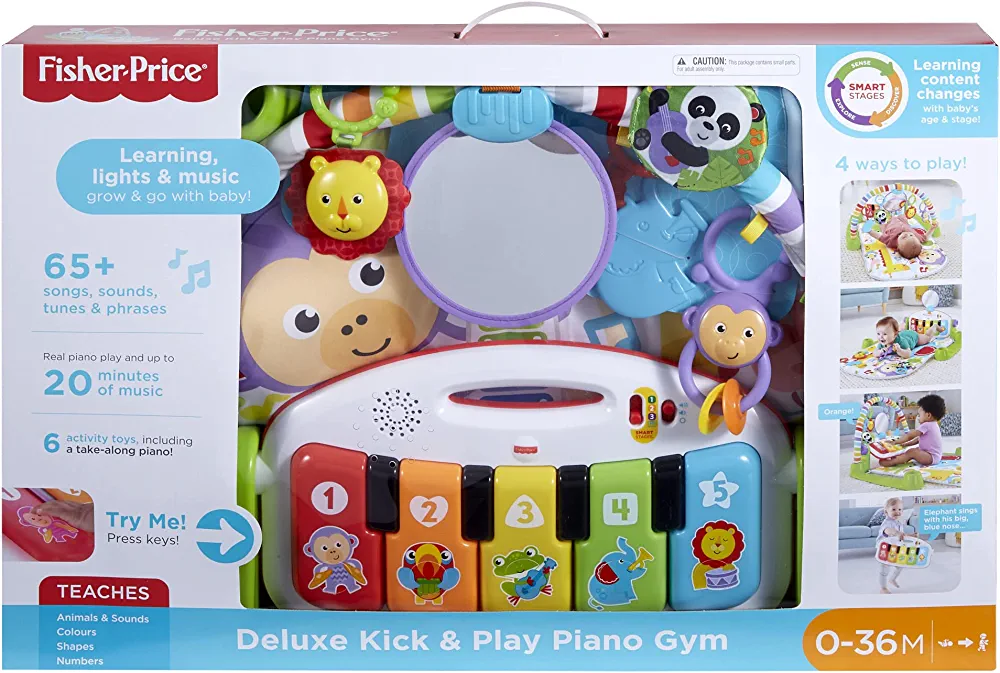 | nameOriginal | Fisher-Price Deluxe Kick & Play Piano Gym – UK English Edition, baby activity playmat with toy piano, lights, music and learning content |
