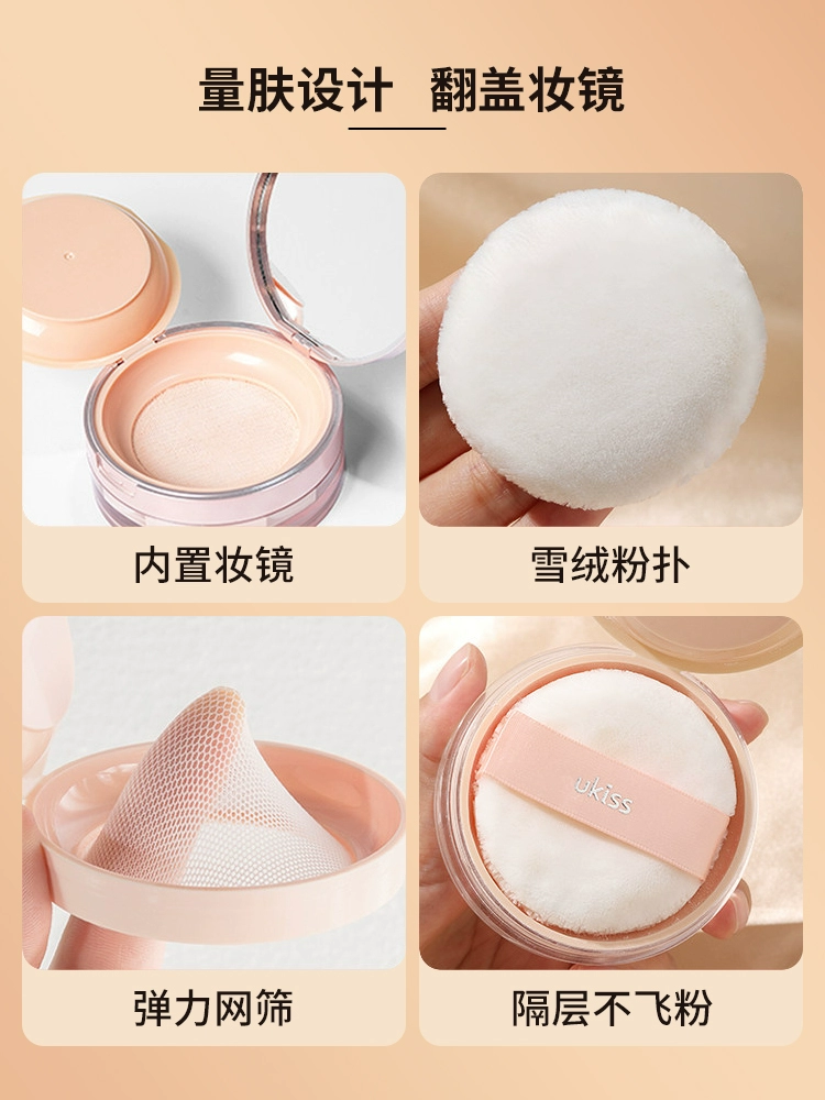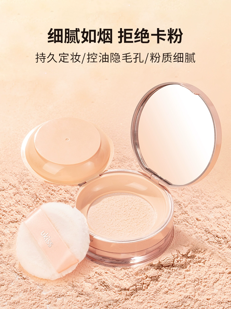 UKISS loose powder setting powder cake is oil-controlling, long-lasting, waterproof, sweat-proof and does not take off makeup. Affordable dry powder for oily skin students.