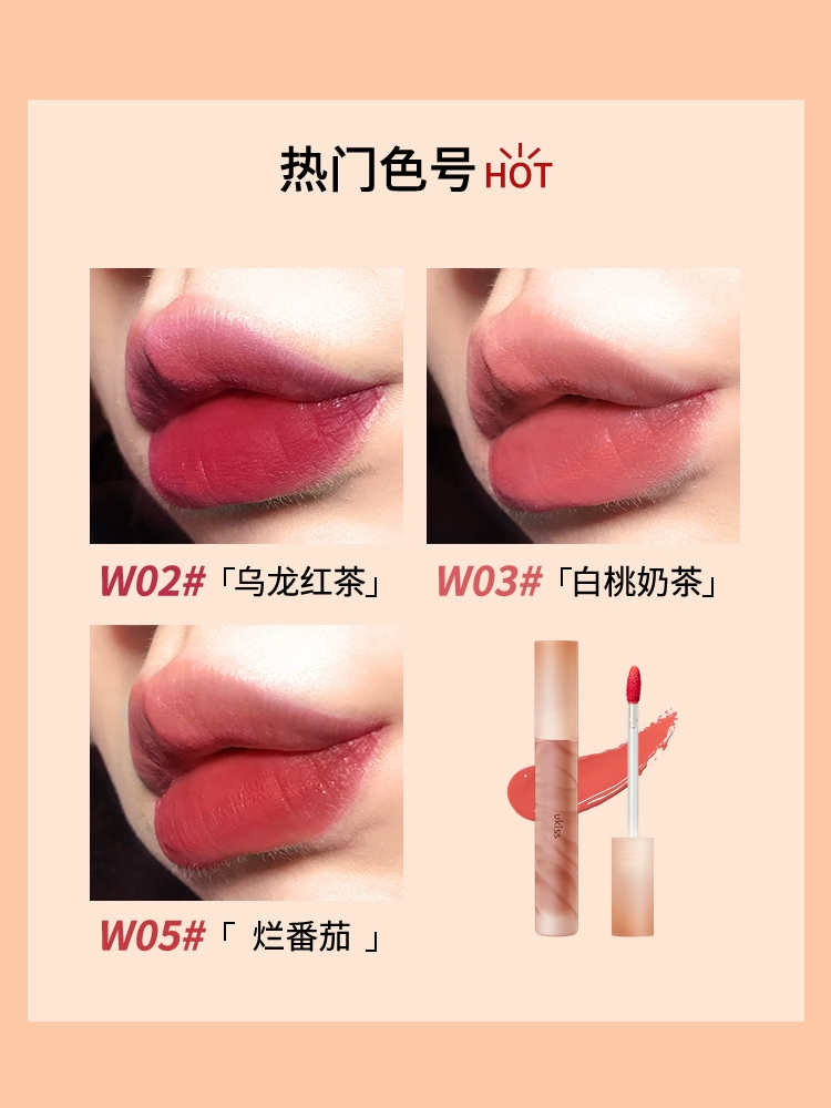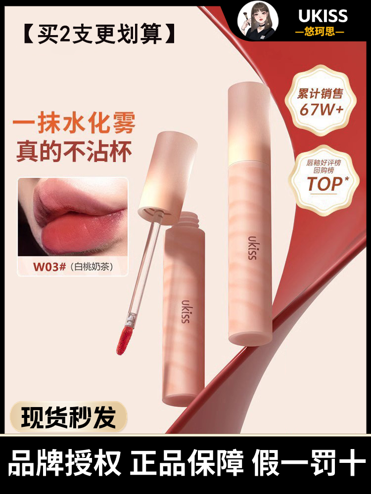 ukiss water lip dewy mist lip glaze W03 non-stick cup mirror velvet matte matte lipstick W05 lip mud gloss w02
