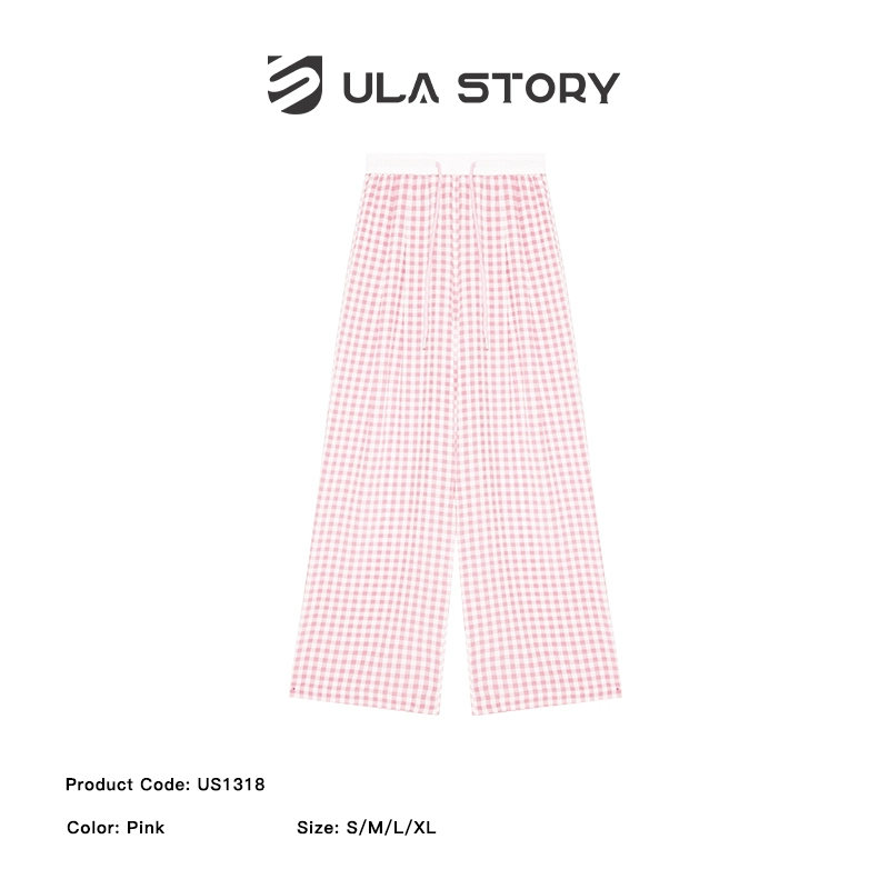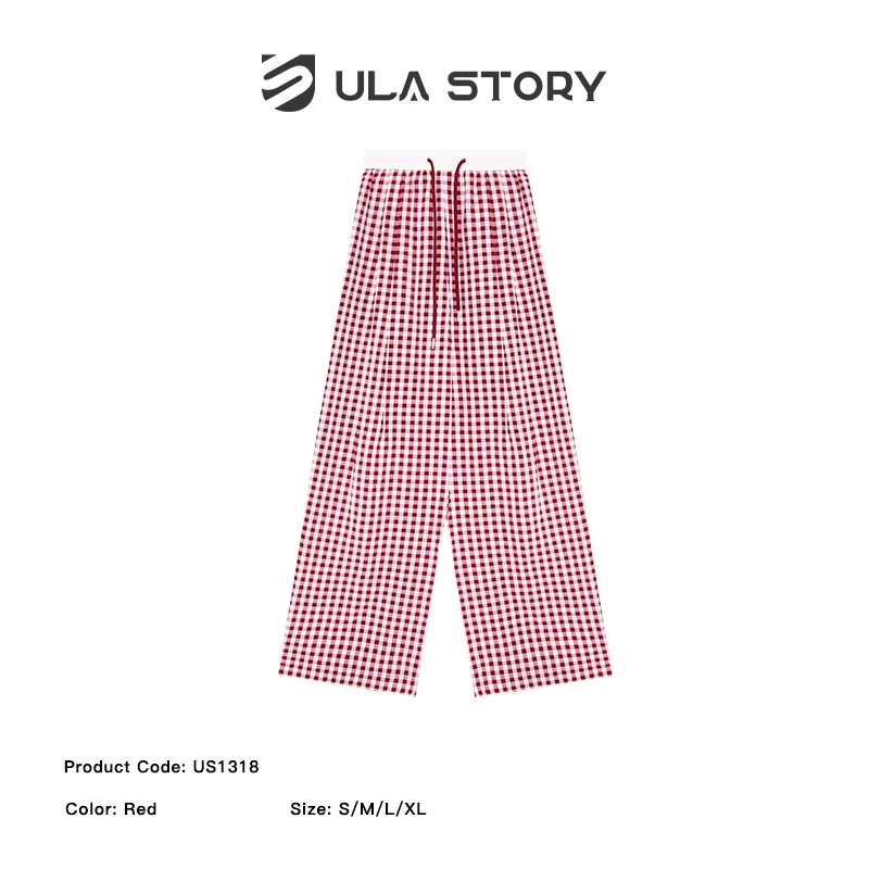 | nameOriginal | Ula Story fashion suit women's bow embroidered short-sleeved T-shirt summer plaid wide-leg casual pants two-piece set |