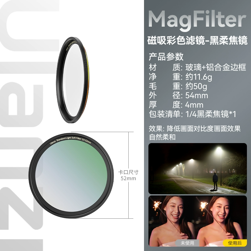 | nameOriginal | Ulanzi 52mm mobile phone MagFilter magnetic filter set is suitable for Apple 13/14/15 series Android mobile phone lenses ND light-reducing white black soft CPL polarizing starlight lens |