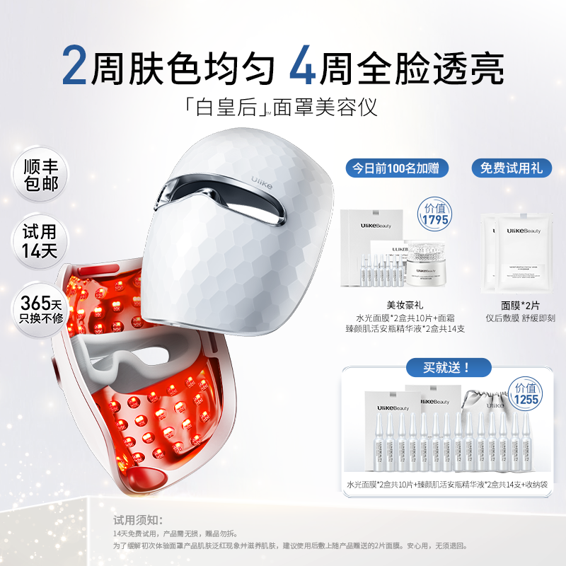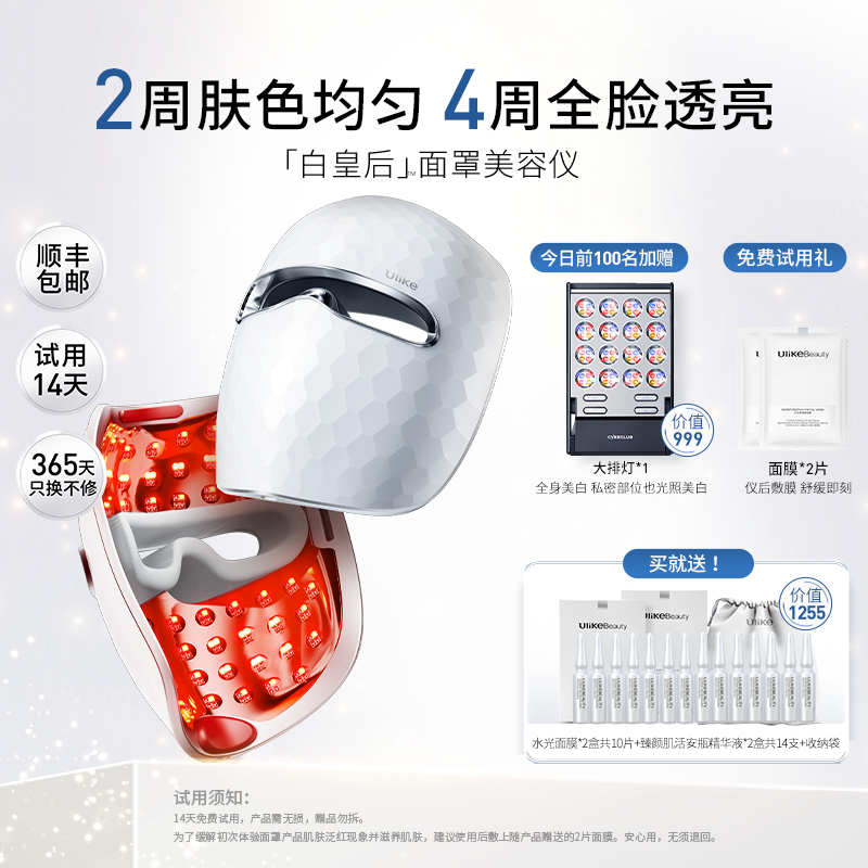 Ulike White Queen mask beauty instrument home facial photon rejuvenation instrument whitening and acne removal red and blue light row lamp