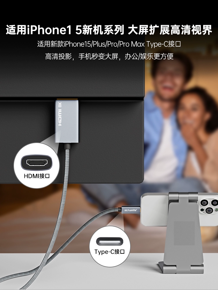 | nameOriginal | ULT-unite is suitable for Apple 15/16 Huawei mobile phone laptop typec to hdmi TV 8K same-screen conversion cable ipad display projector 4K high-definition screen casting cable |