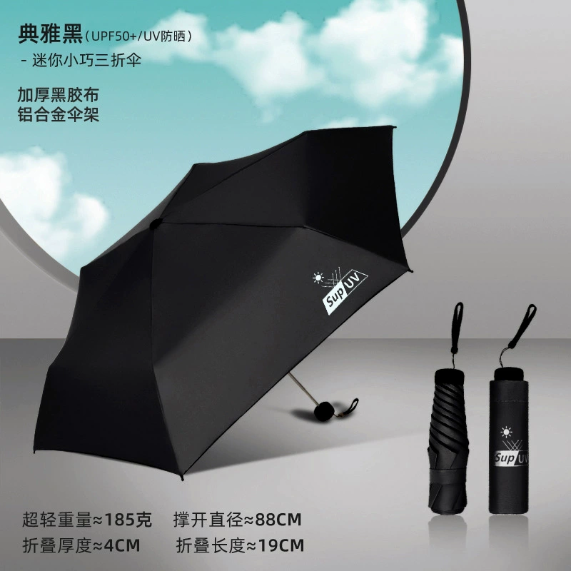 Ultra-light 185g compact and portable 50% off mini aluminum alloy black plastic sunshade sun protection UV sun umbrella for women
