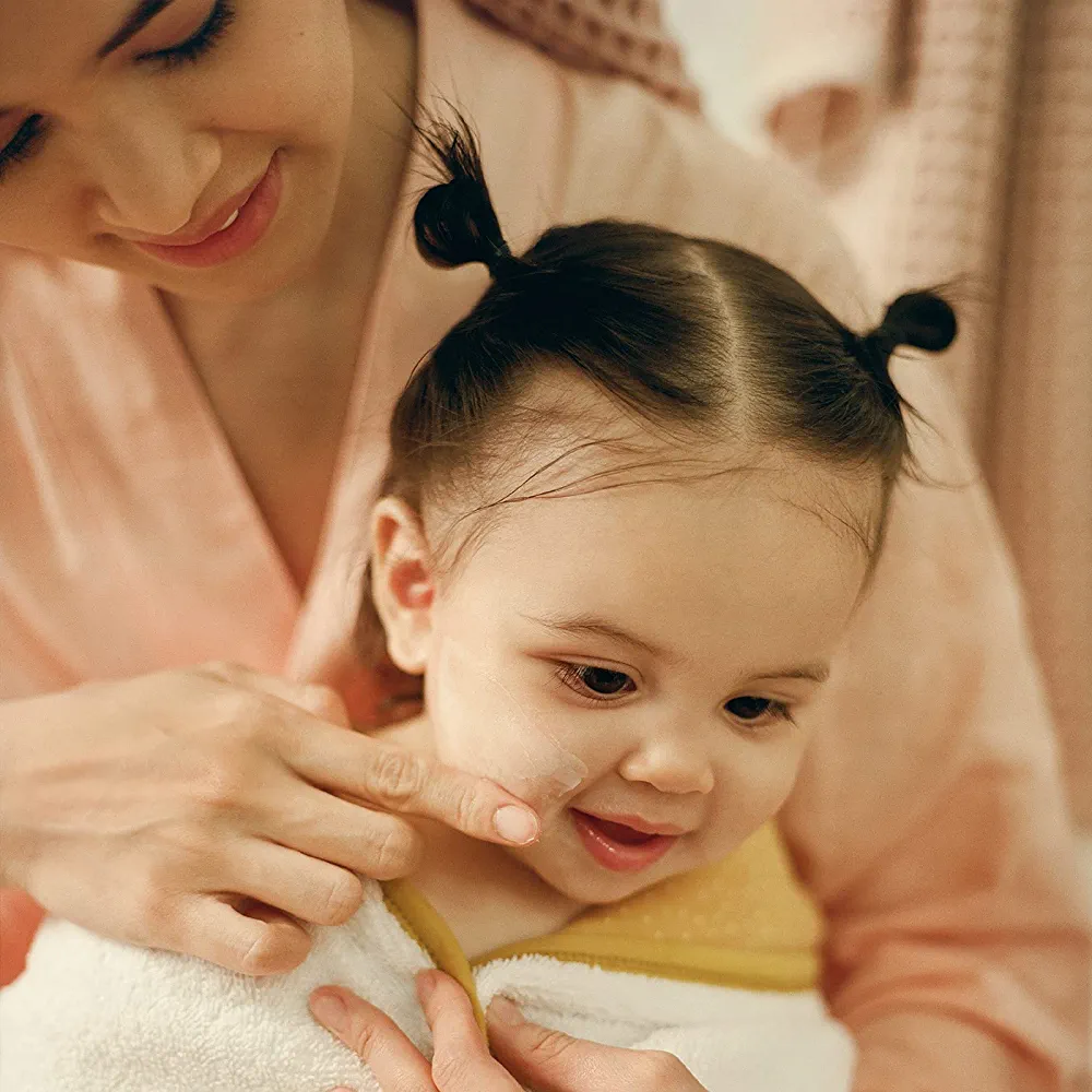 This moisturizer is specially designed to provide intense hydration to the delicate and often dry skin on a baby’s face. Its lightweight texture makes it perfect for use during warmer months, as it refreshes and moisturizes without feeling heavy. The formula contains plant-based ingredients such as polyglutamic acid and hyaluronic acid, which work together to replenish and boost moisture, while sunflower seed oil helps to restore the skin’s natural moisture barrier. This multi-tasking product is safe for use on sensitive skin and can help combat a range of concerns, including dryness and flaking. It is made in the USA and has been created by doctors and dermatologist tested to ensure it is non-toxic, clean, and pure.