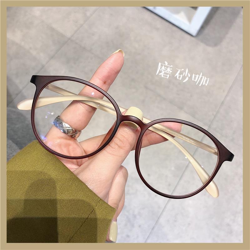 Ultra-light Retro Oval Frame Women's Red Riding Book Same Style Frosted brown Round Face Slimming Size Plain Face Myopia Frame