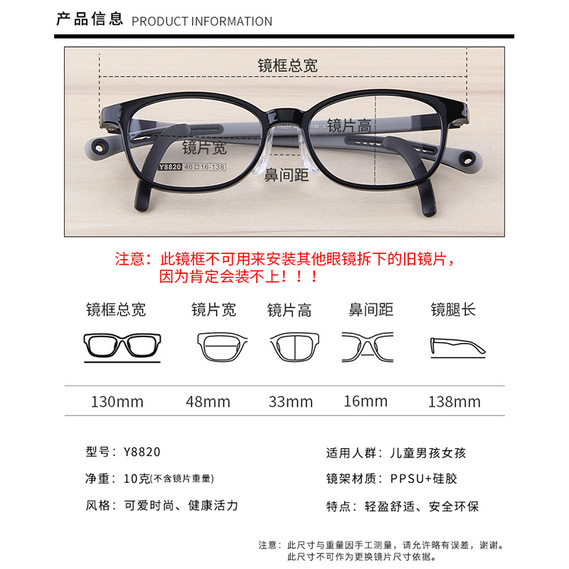 Ultra-light TR silicone children’s sports frame youth glasses frame with non-slip foot cover Y8820 for myopia