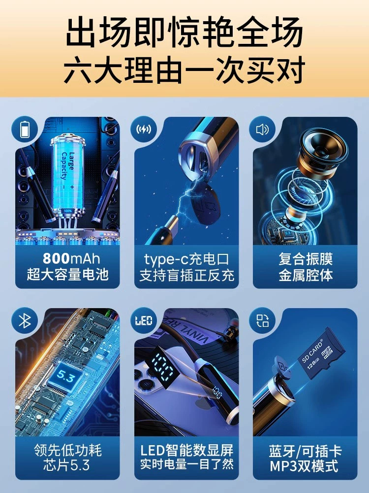 Ultra-long battery life wireless Bluetooth headset 2024 new noise reduction neck hanging type sports running suitable for Apple Huawei