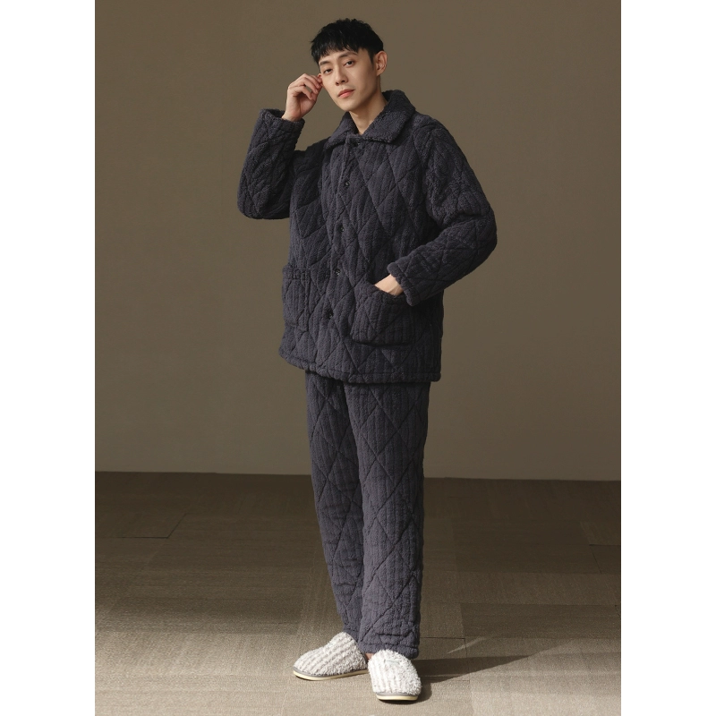 | nameOriginal | Ultra-thick quilted three-layer light green plush couple's pajamas |