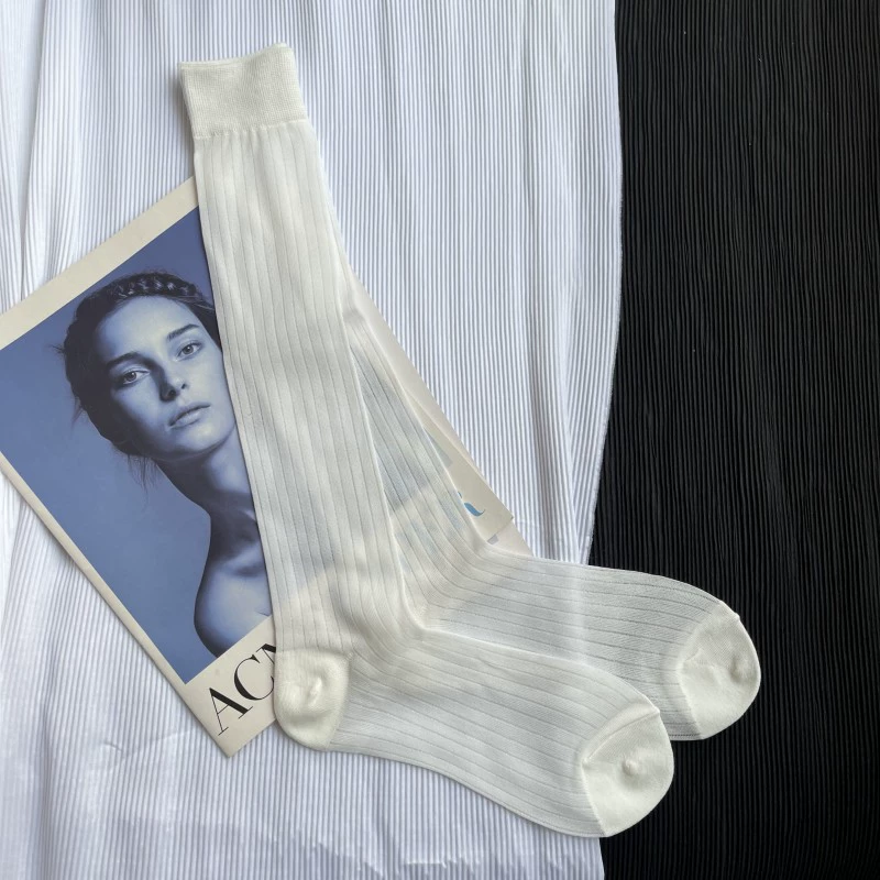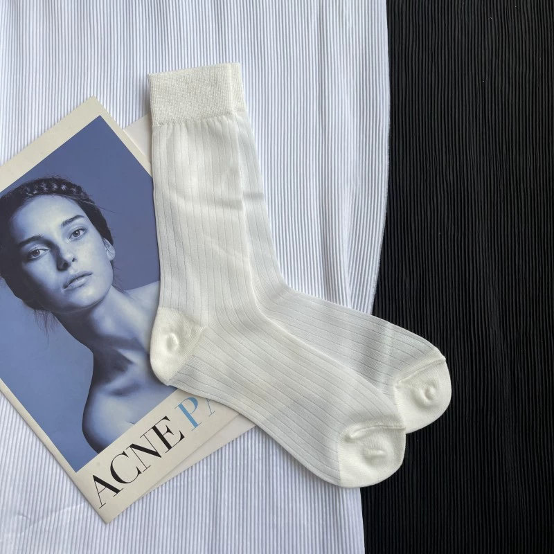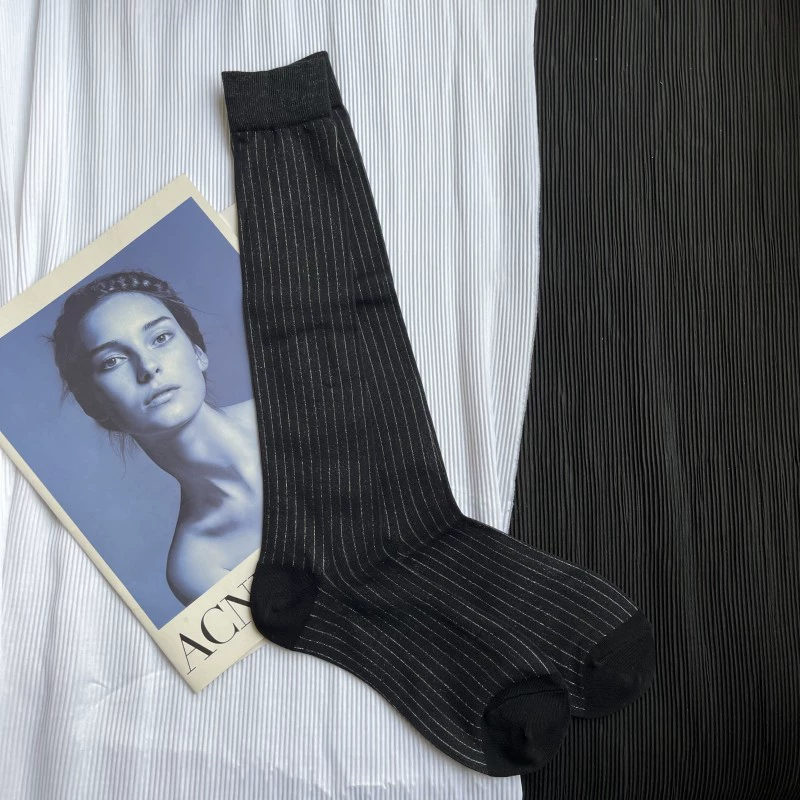 | nameOriginal | Ultra-thin bright silk vertical striped summer stockings versatile solid color stockings JK black and white women's socks |