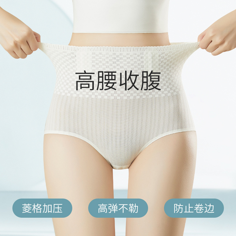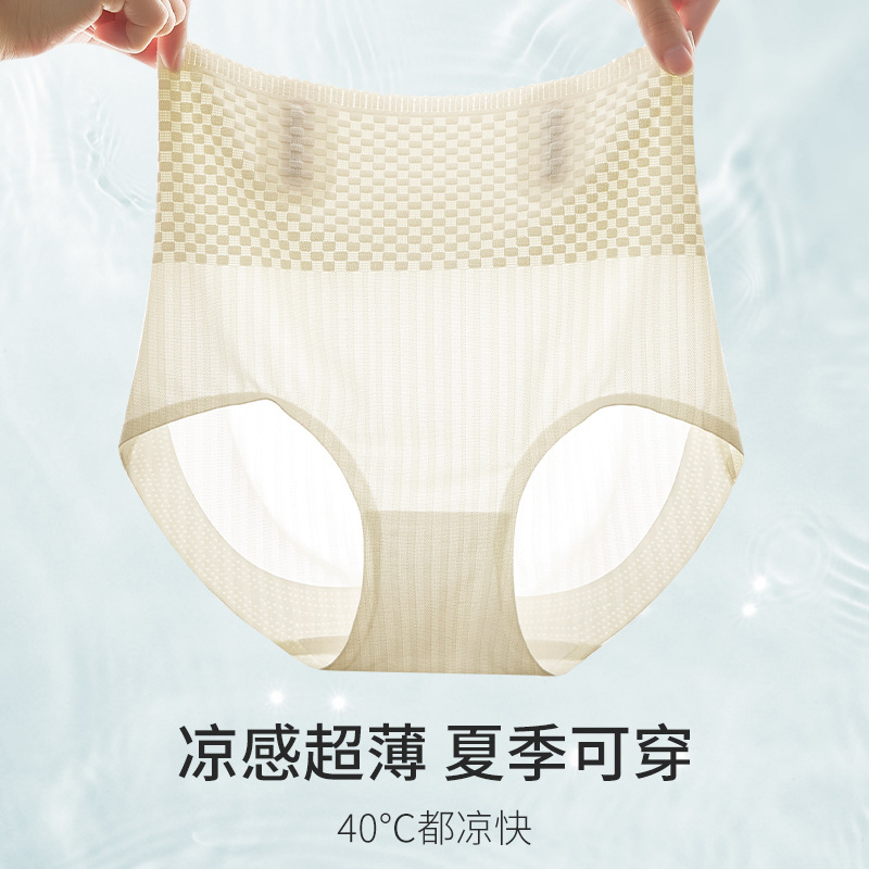 Ultra-thin seamless women's belly shaping underwear belly shaping ice silk pants peach hip high waist high elastic hip lifting pants cool feeling