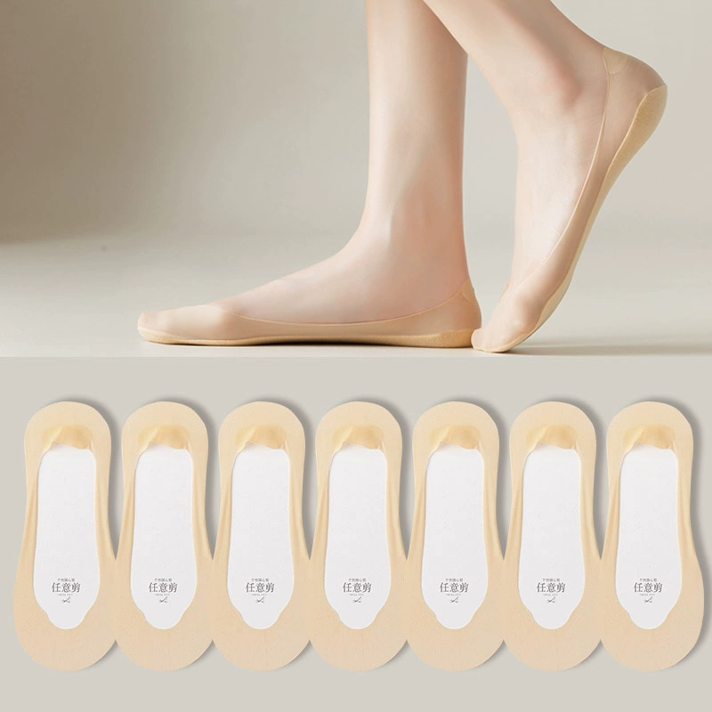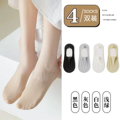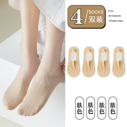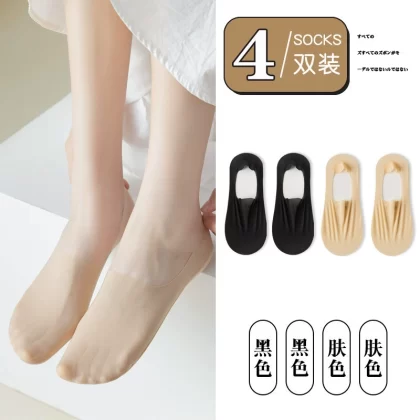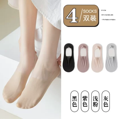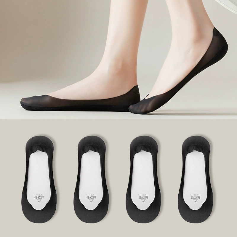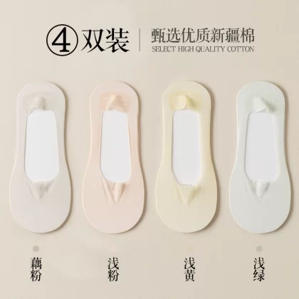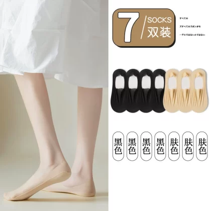 Ultra-thin shallow mouth pure cotton ice stockings summer high heels