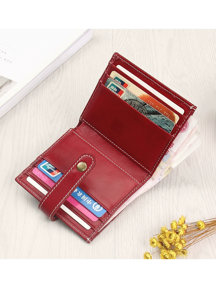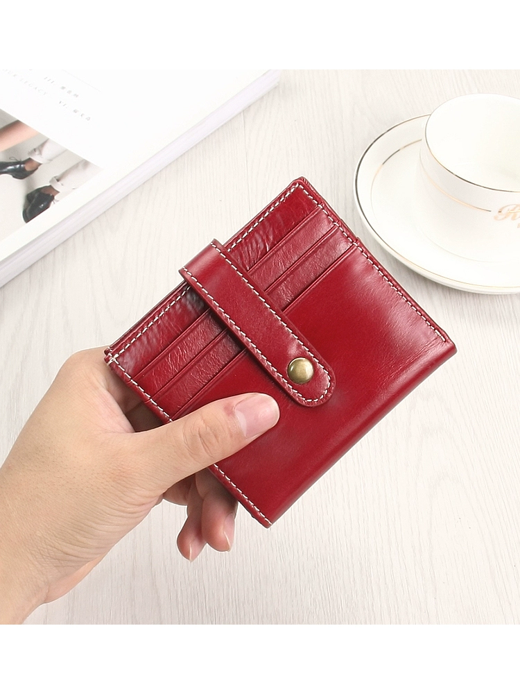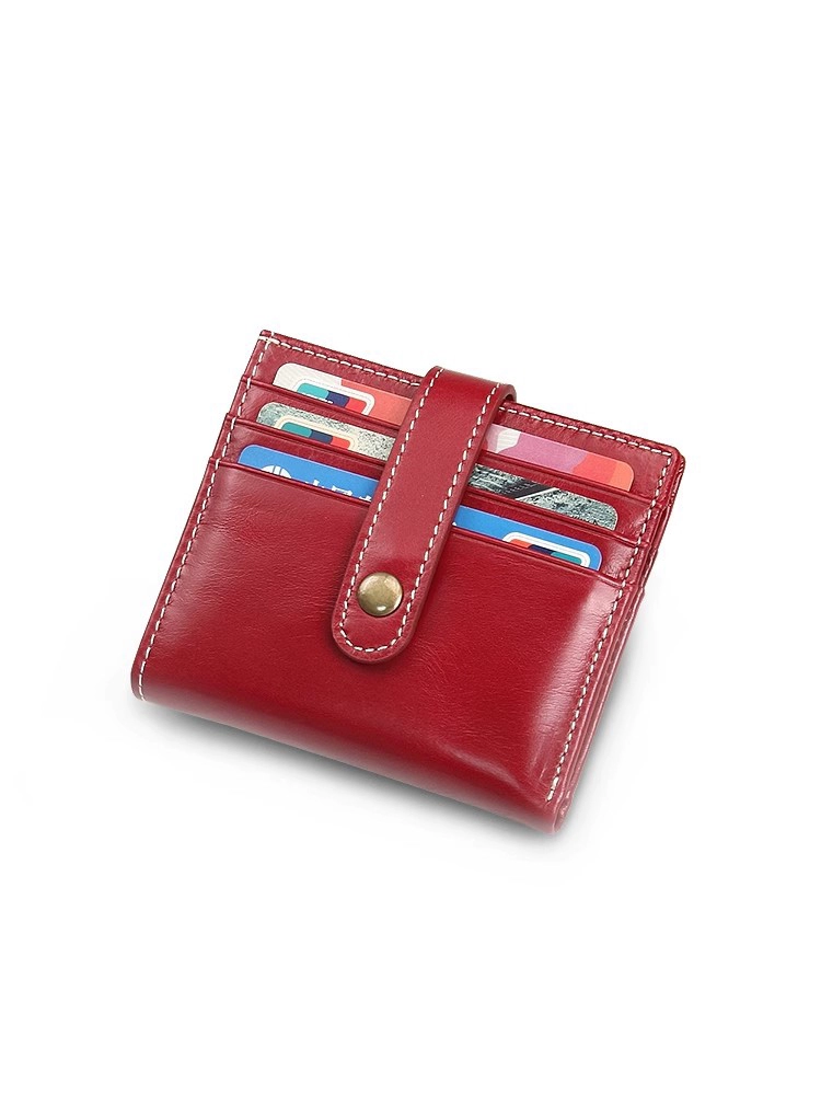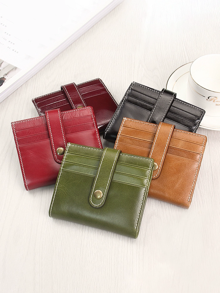 | nameOriginal | Ultra-thin wallet women's genuine leather retro small wallet oil wax leather multi-card slot card holder integrated buckle folding simple wallet |