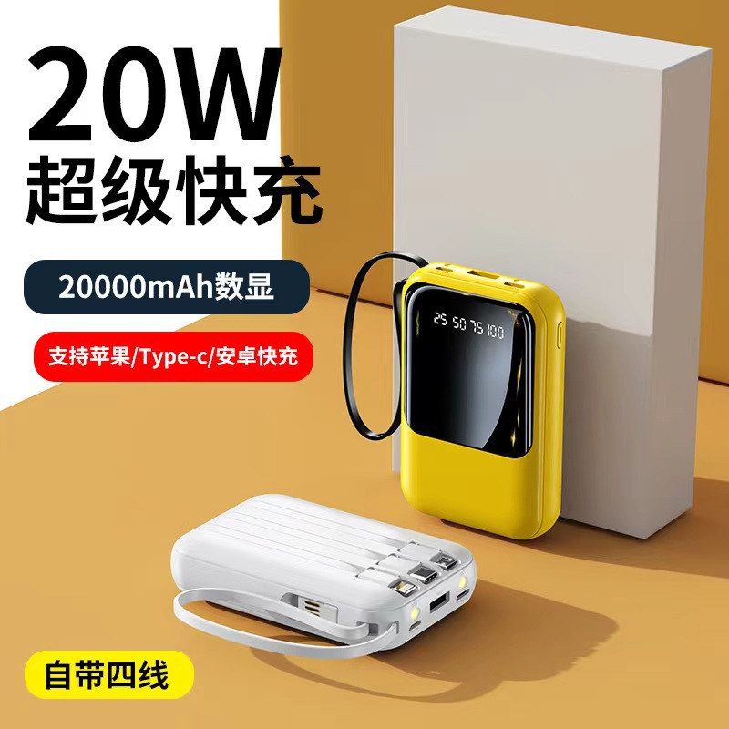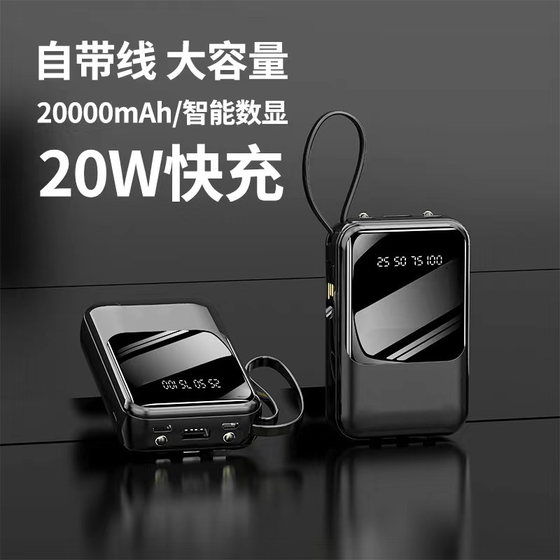 Ultra-thin with four-wire charging treasure 20000 mA creative mini mirror digital display fast charging sharing mobile power