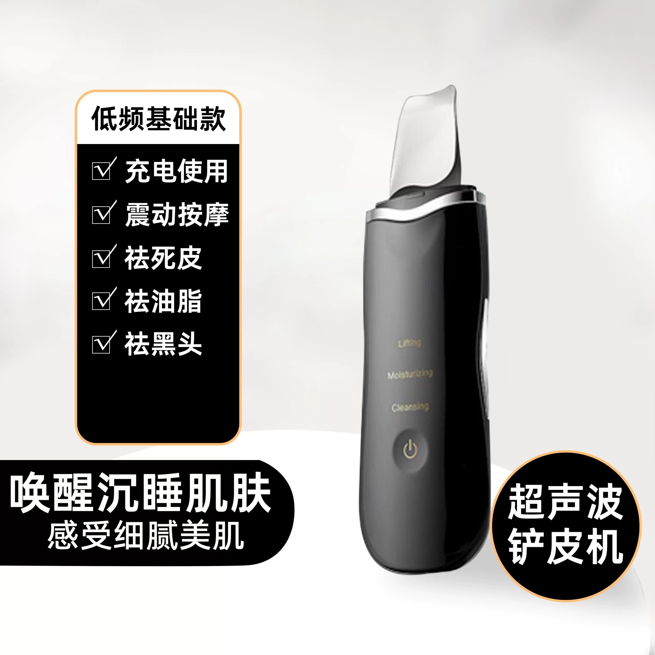| nameOriginal | Ultrasonic blackhead shovel, blackhead suction tool, beauty instrument, facial pore cleaning shovel machine, instrument for lifting and tightening  |
