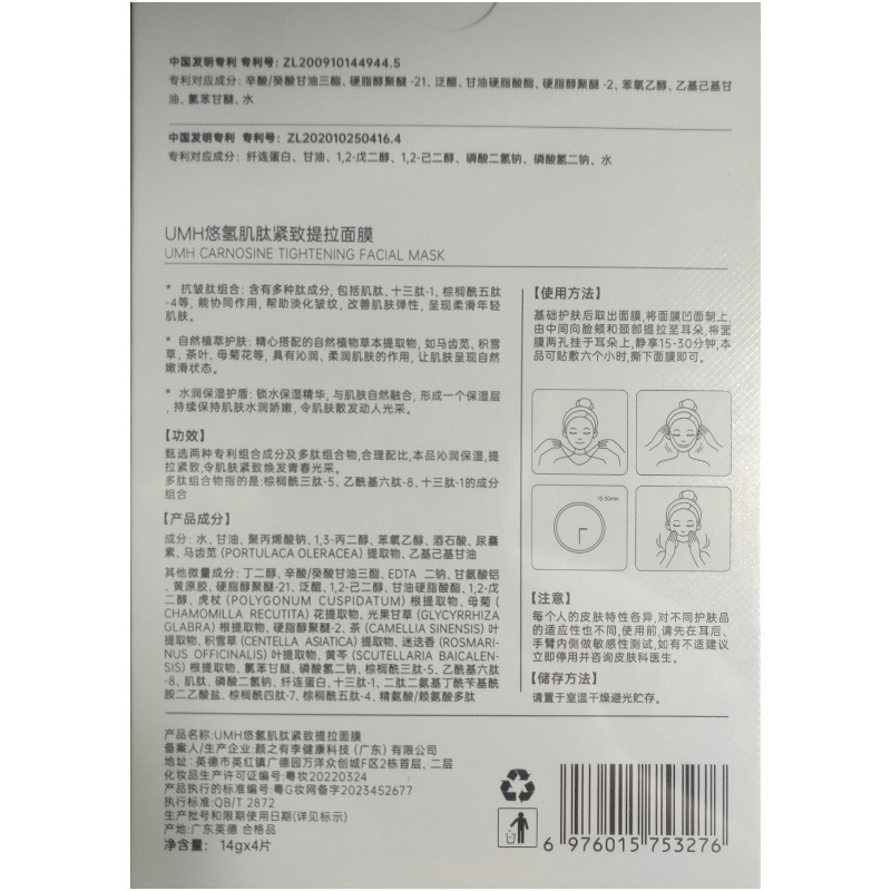 | nameOriginal | UMH hydrogen carnosine firming lifting mask physical lifting v face firming fading French pattern mask hair generation |