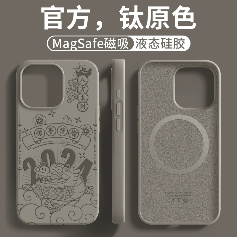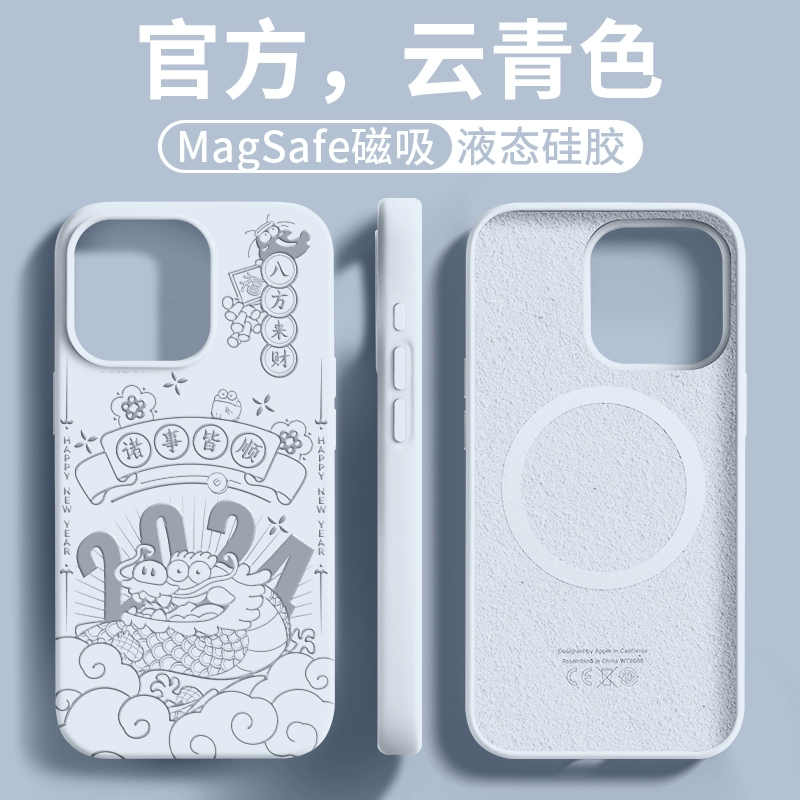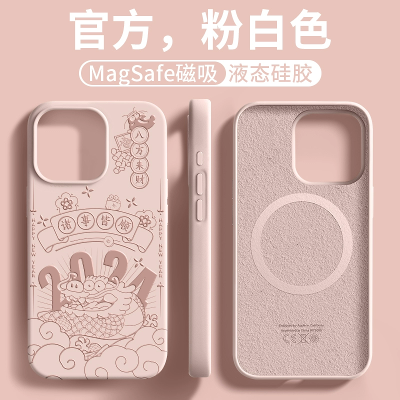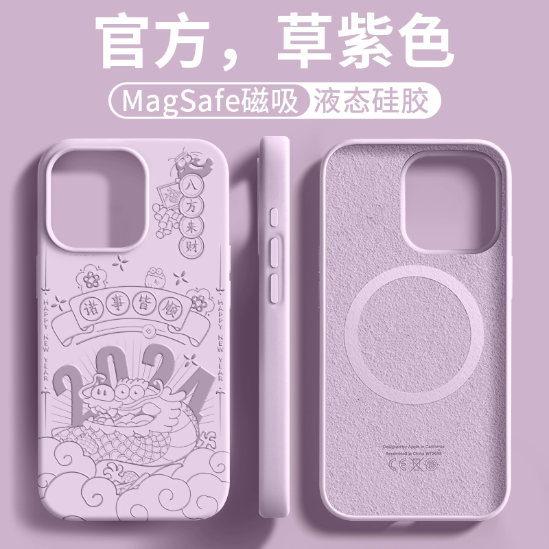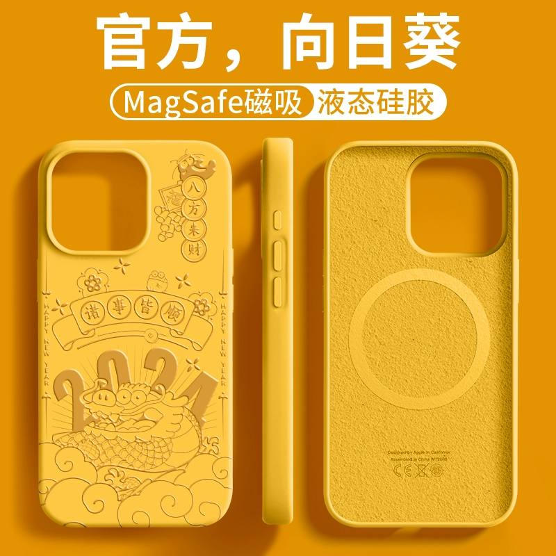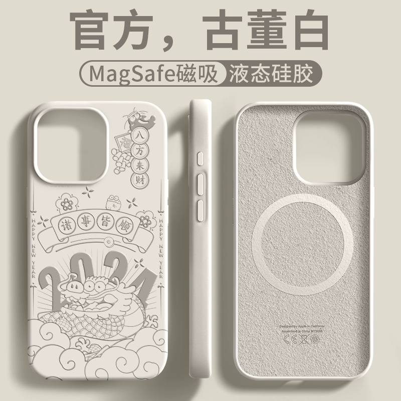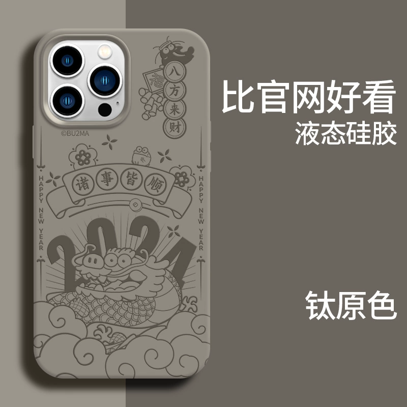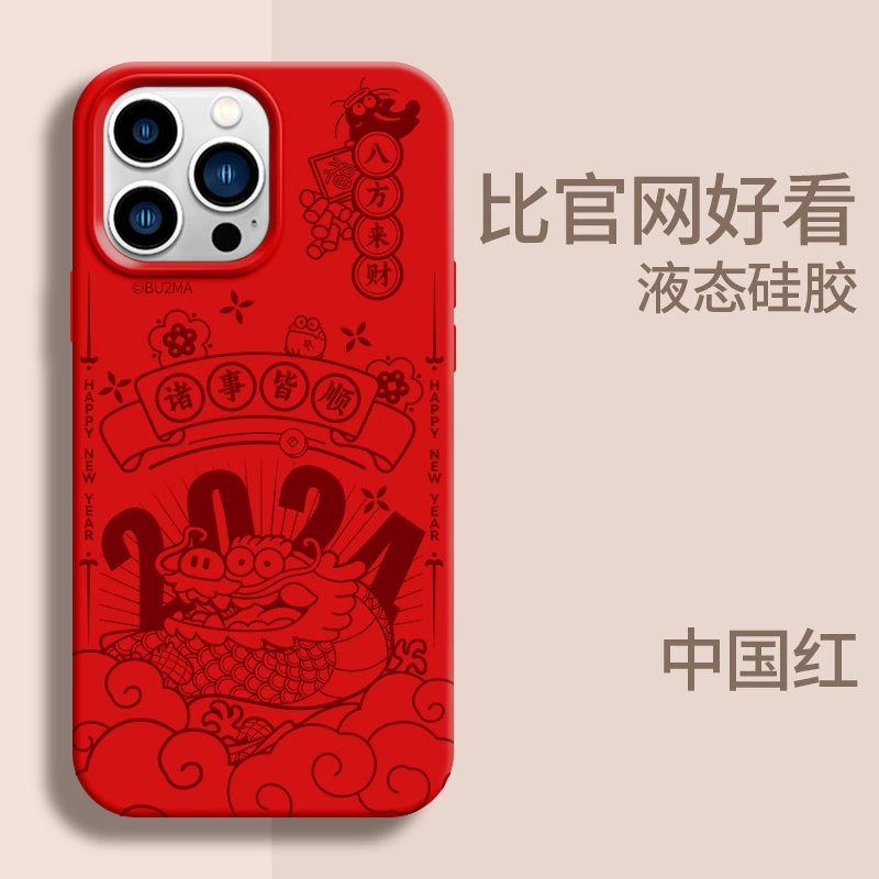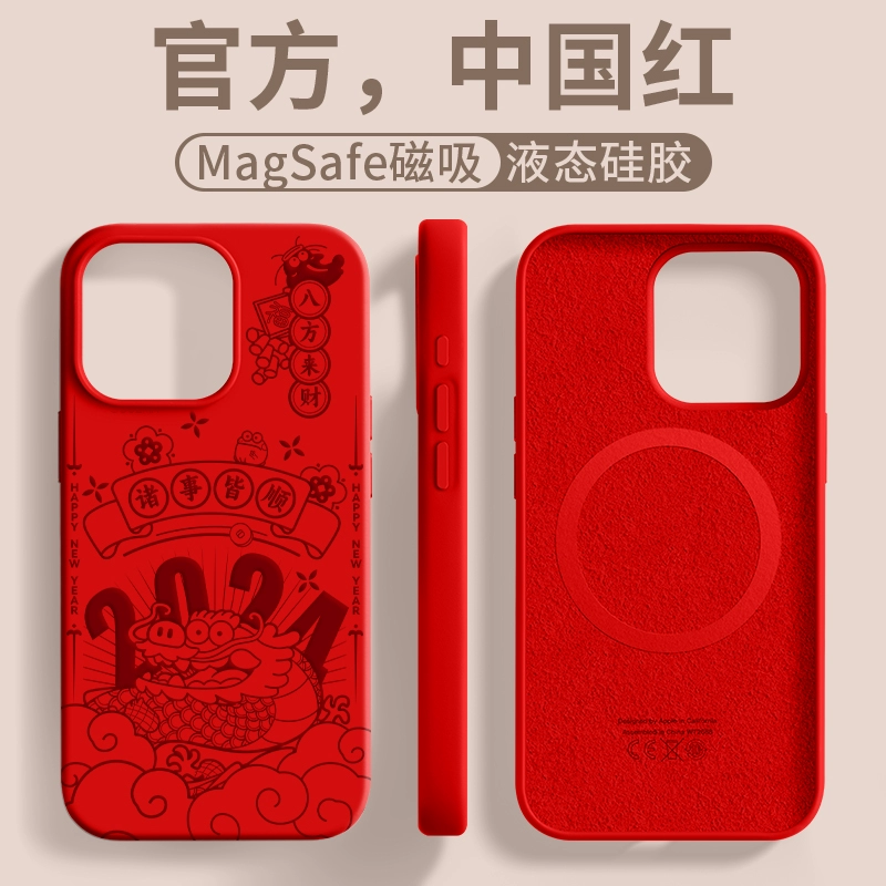 Uncle Fujima is authentically authorized and suitable for Apple 15 mobile phone case, New Year model iPhone15promax liquid silicone case, all-inclusive anti-fall couple, autumn and winter magnetic suction red, zodiac dragon year, new year.