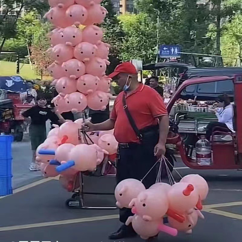 Uncle TikTok same style inflatable pig head Stick Internet celebrity stall pig stick leather goods pvc flesh color pig head balloon wholesale