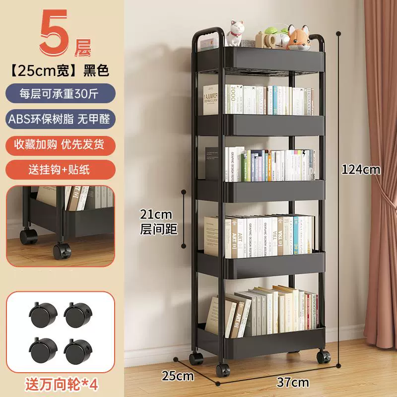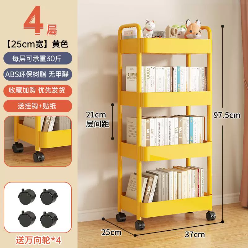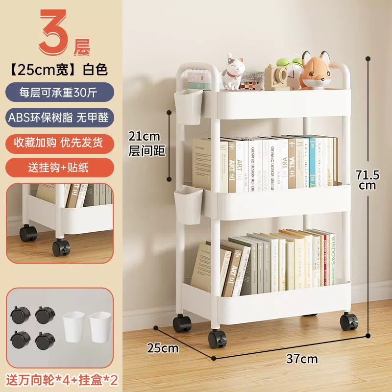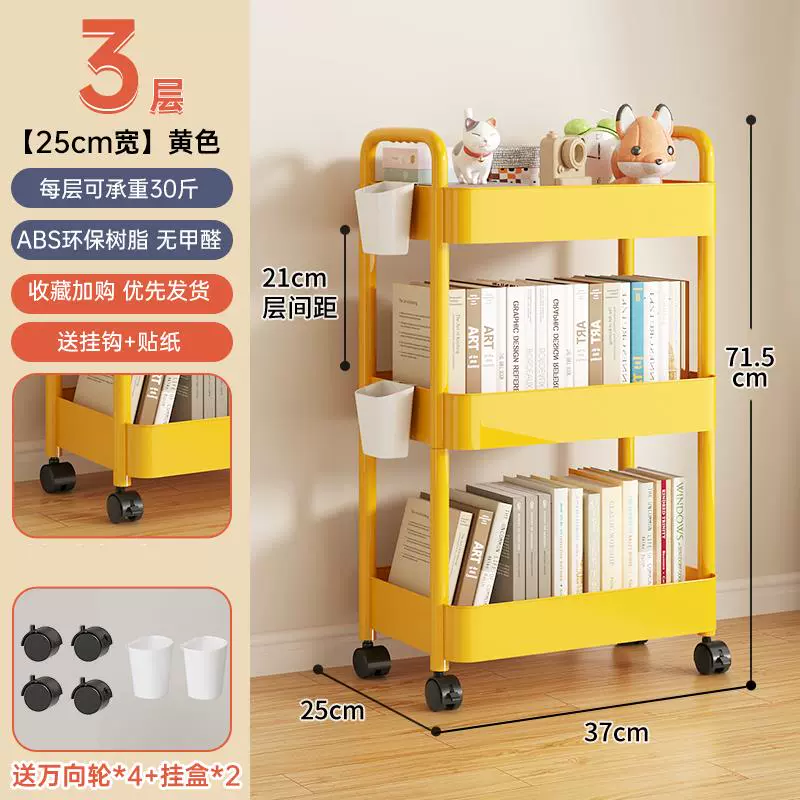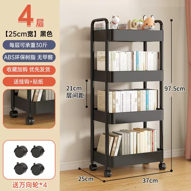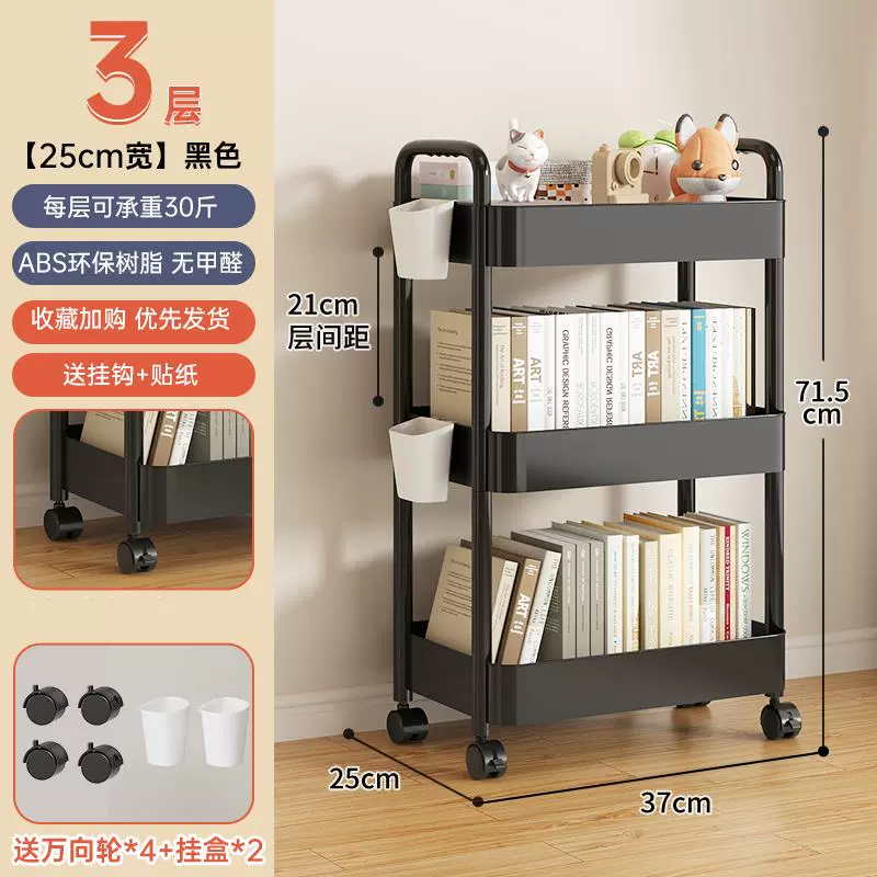 Under-desk bookshelf rack floor-standing office bag removable trolley snack storage wheeled desktop bookcase