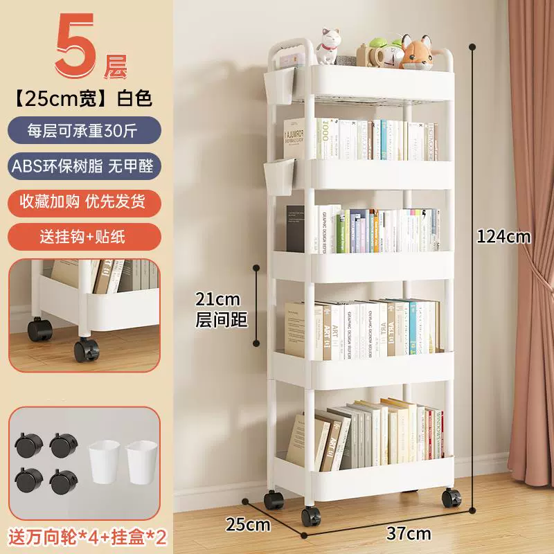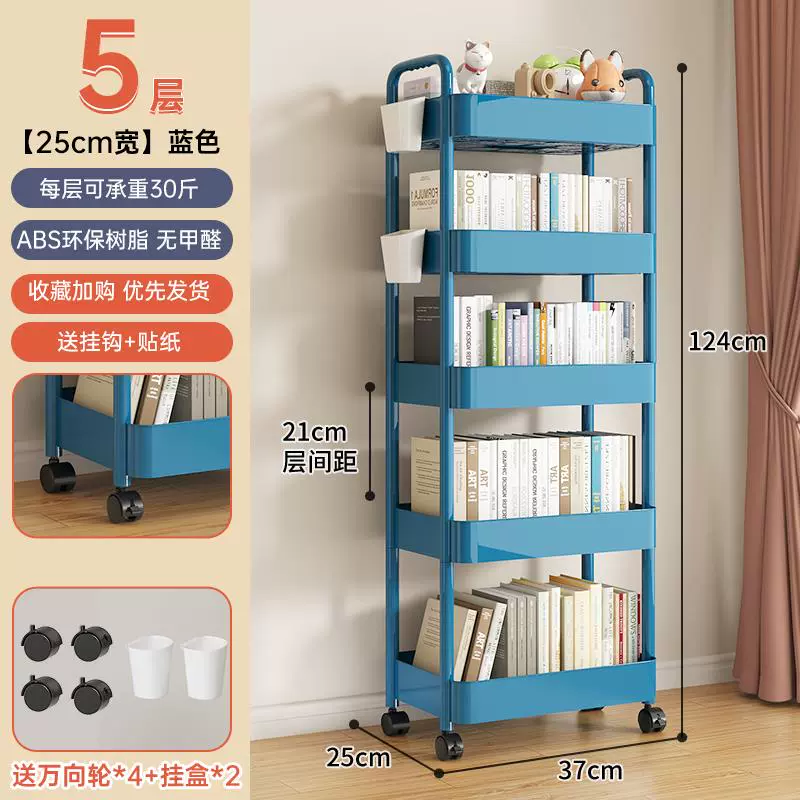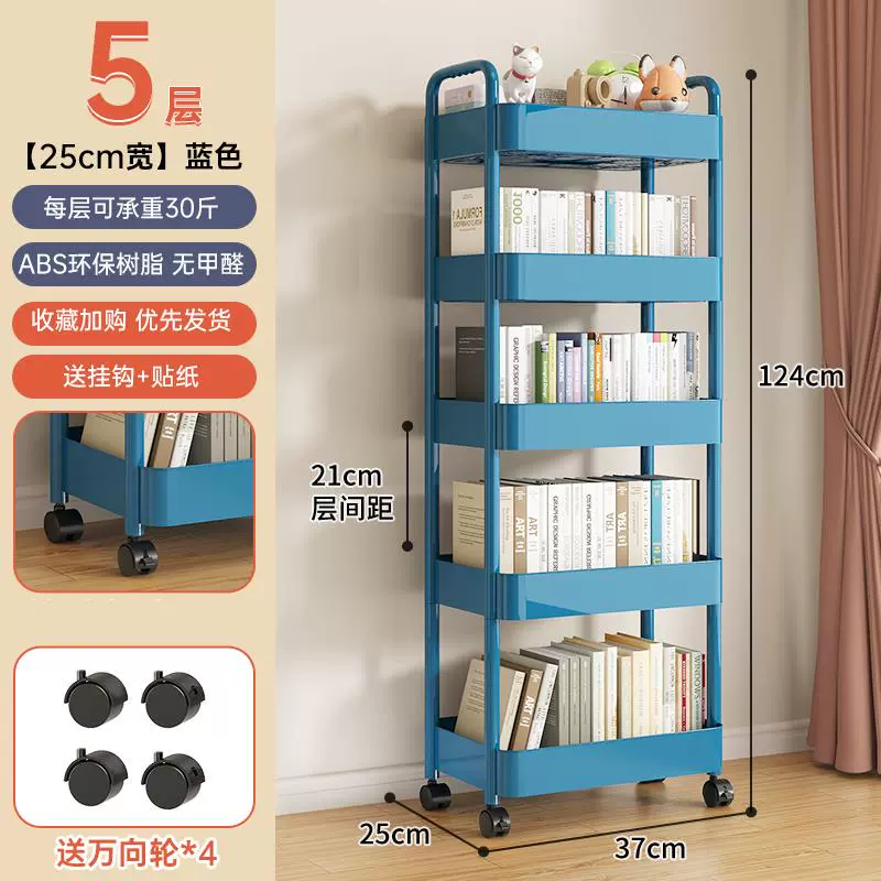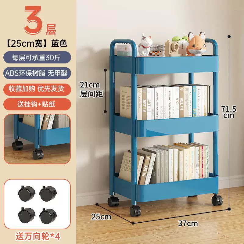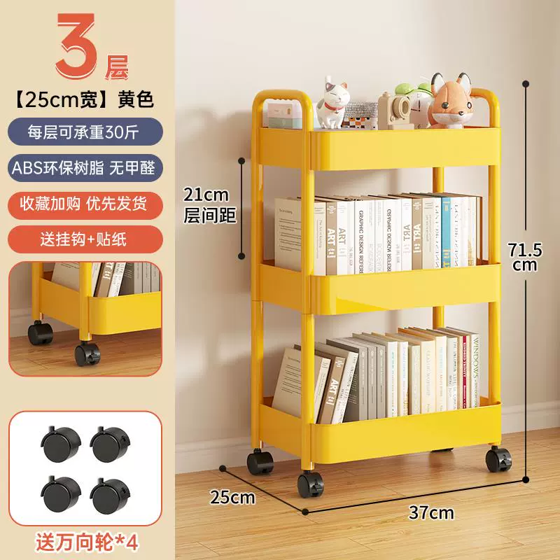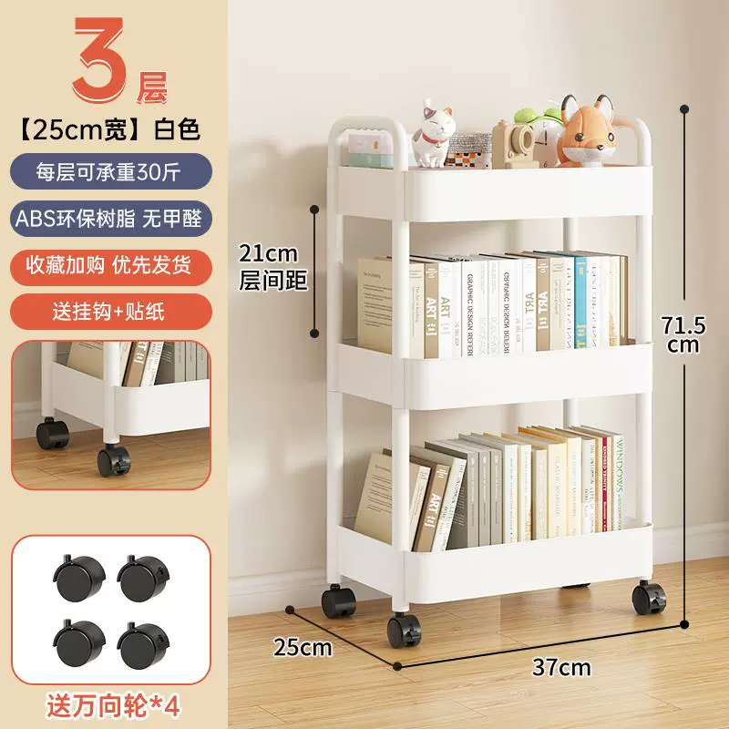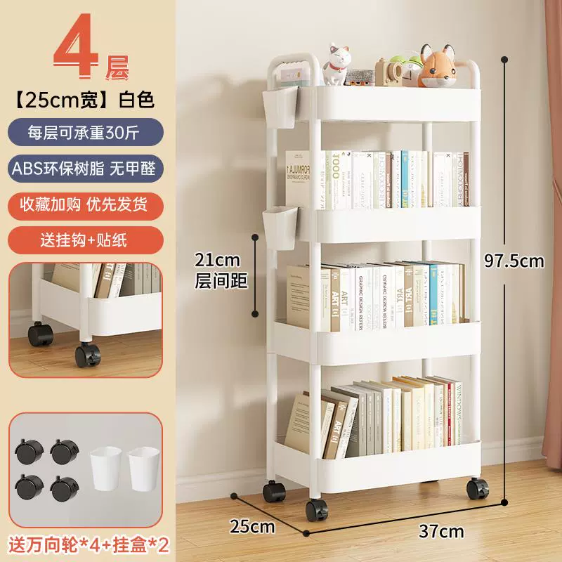 Under-desk bookshelf rack floor-standing office bag removable trolley snack storage wheeled desktop bookcase