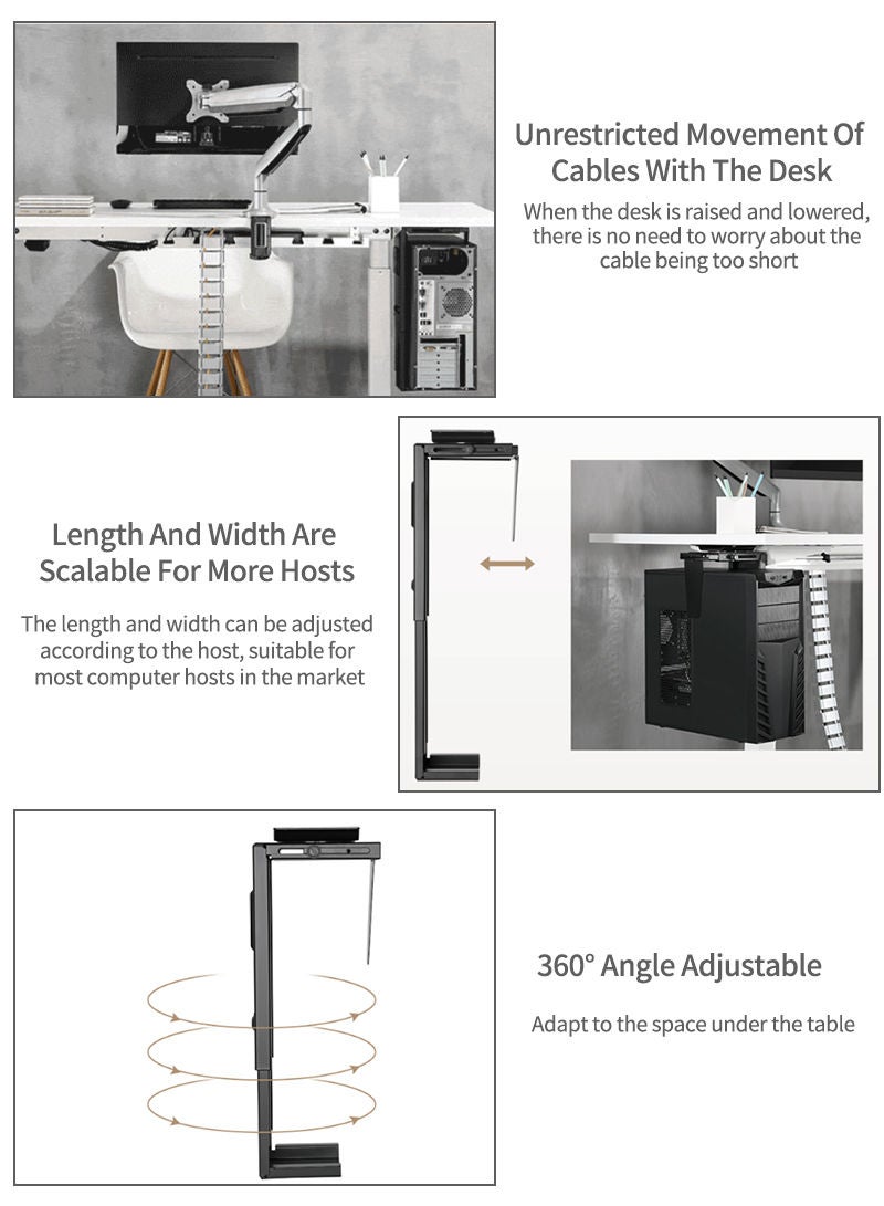 The CPU Holder Under Desk Mount is the perfect solution for keeping your computer tower off the floor and out of the way. This adjustable wall mount is designed to securely hold your PC tower in place, while also allowing for 360° swivel for easy access to ports and cables. The heavy-duty construction ensures that your computer tower is safe and secure, while the under desk mount design helps to free up valuable desk space. With its sleek and modern design, this computer tower holder is the perfect addition to any workspace. So, if you’re looking for a reliable and convenient way to keep your computer tower off the floor and out of the way, the CPU Holder Under Desk Mount is the perfect choice.