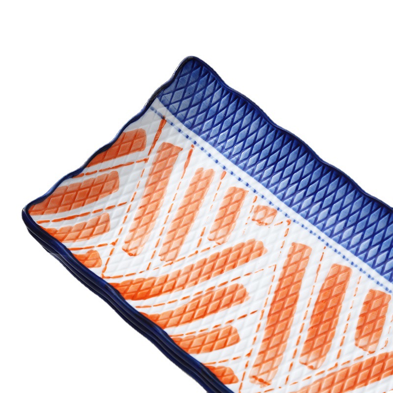 | nameOriginal | Underglaze color plate hand-painted ceramic tableware dim sum sashimi flat plate salmon rectangular restaurant household sushi plate  |