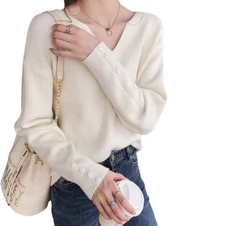 | nameOriginal | Undershirt women's autumn and winter 2023 new style western style V-neck sweater loose sweater long sleeve top ins fashion |