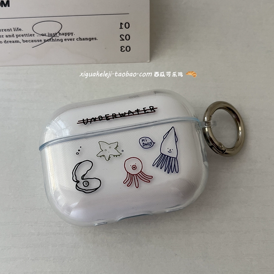 | nameOriginal | Underwater world, niche simple ins style high-end airpods protective cover pro2 generation suitable for Apple earphone case 1/2/3/4/5 2345 transparent silicone soft original cute |